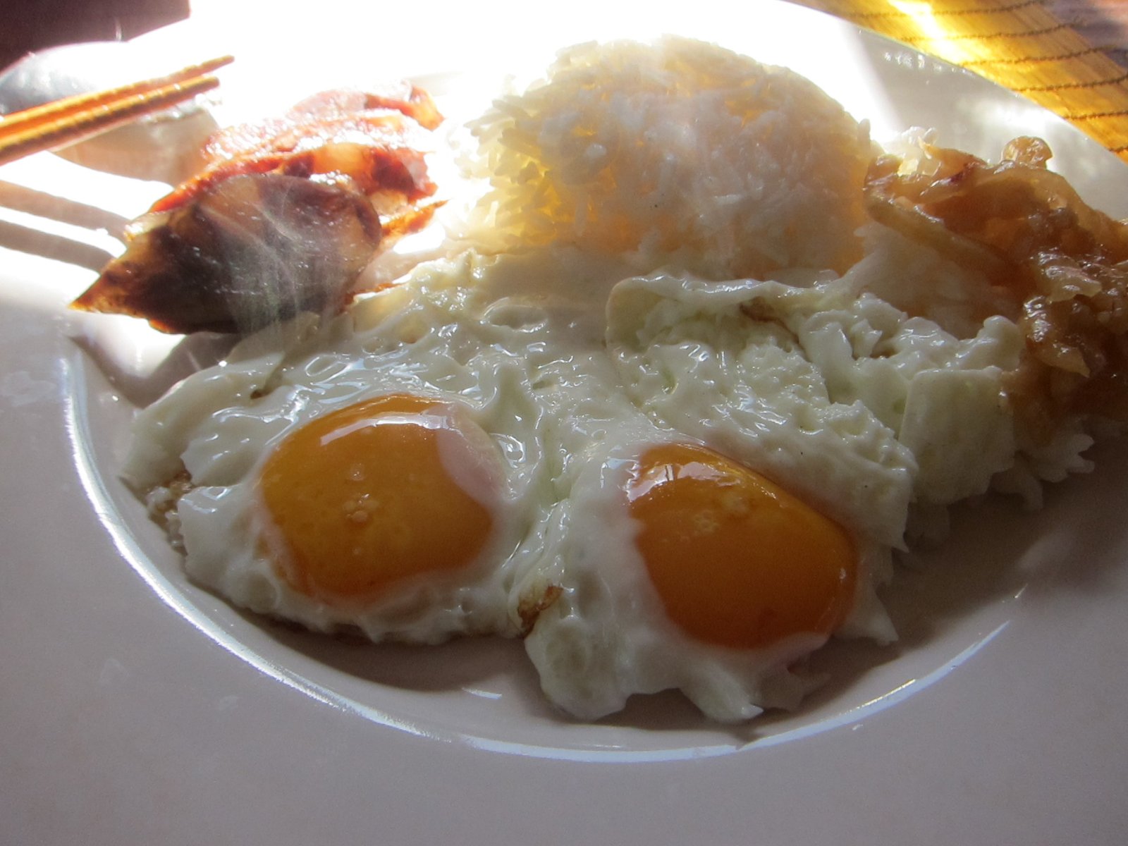 Eggs, rice, and salty protein…..I guess that does it for me……