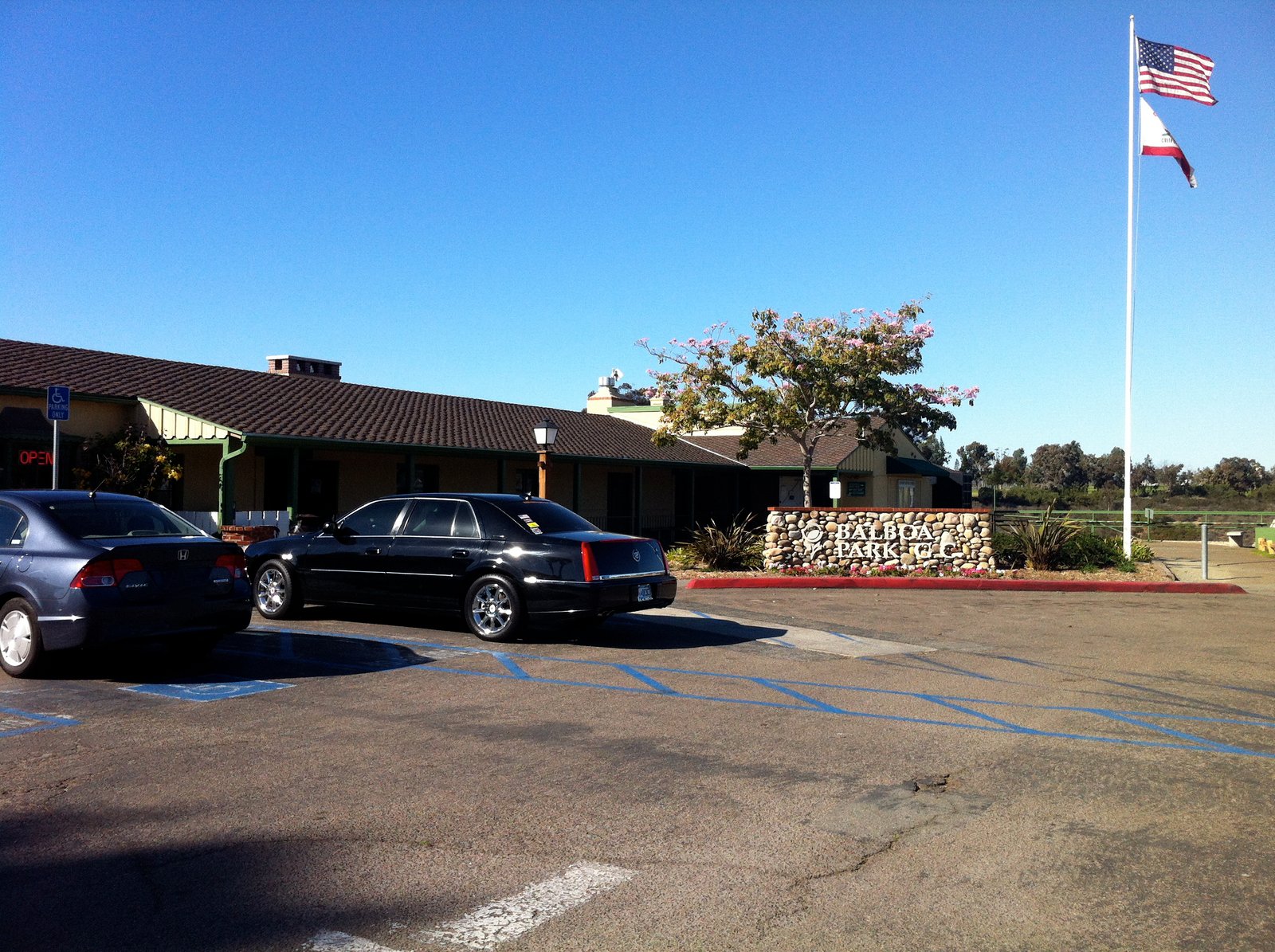 The Balboa Park Golf Course. Look carefully to the left the the photo- the red neon "OPEN" sign. All the way at the end is the Pro Shop, where you pay for your Green Fees and begin (and end) your golf game.