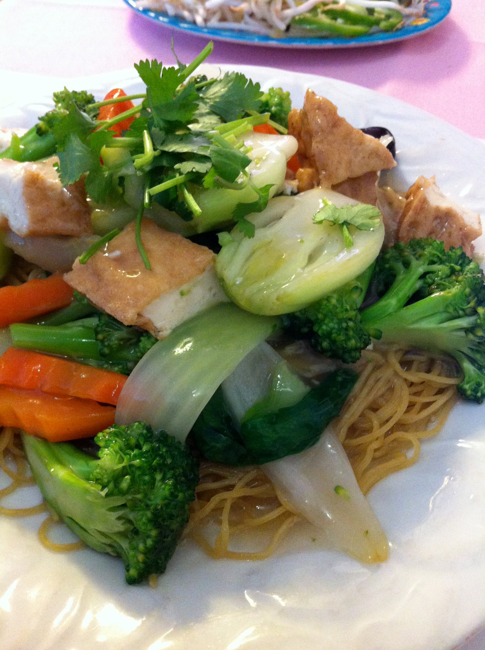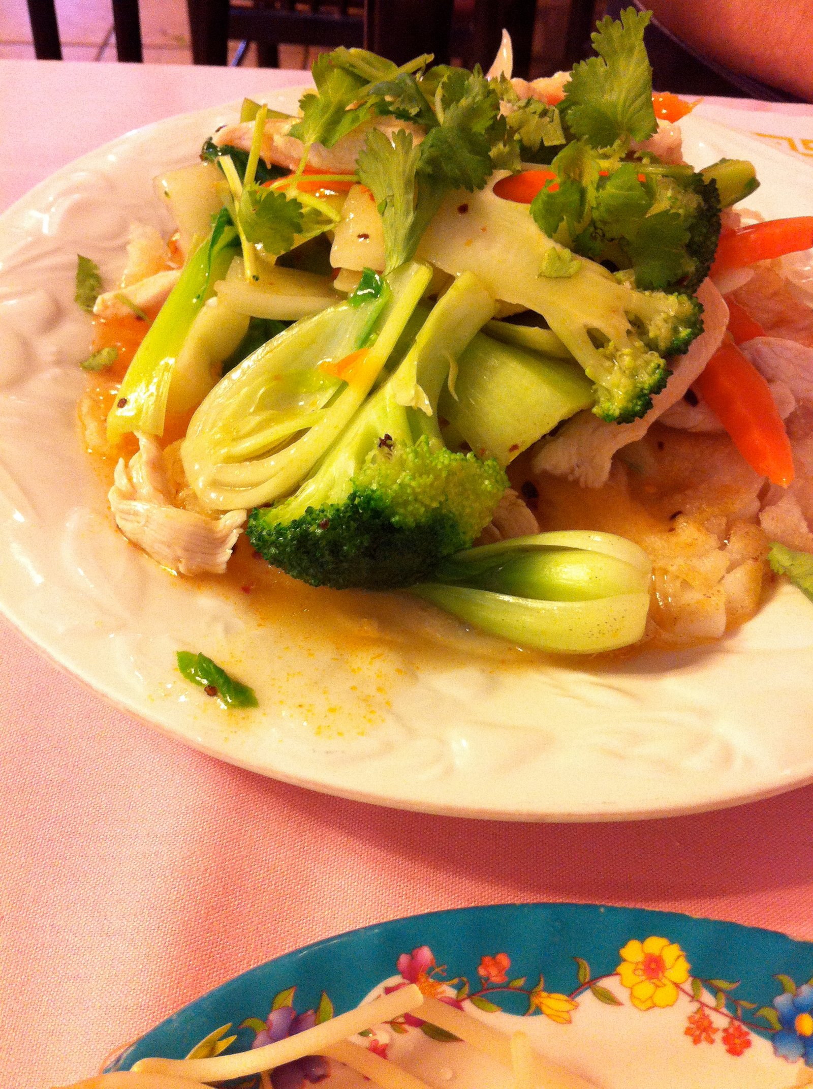 Stir fried chicken and vegetables on wide rice noodle ($7.99) is a favorite. The noodles are slightly fried and a bit crispy in places, which is refreshing.
