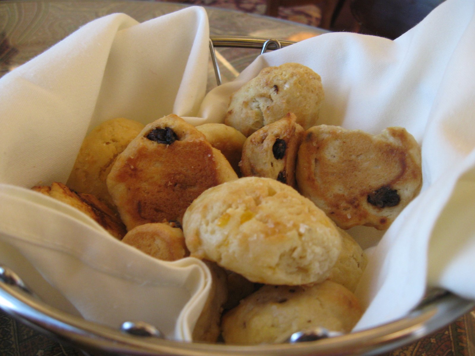 When seated, we were given a large basket of buttery and flaky scones, each about the diameter of an old silver dollar, all rich and flavorful: