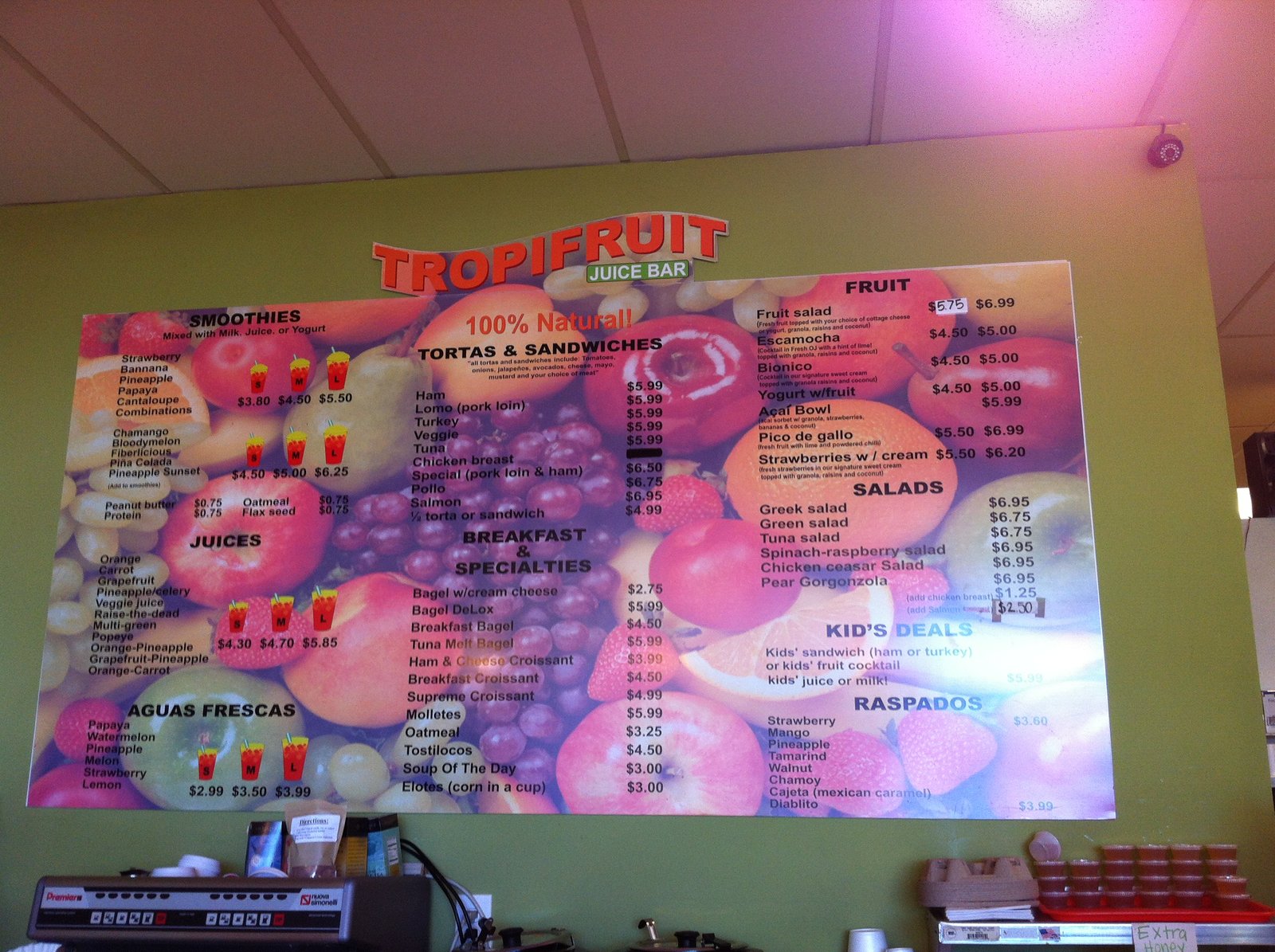 Tropifruit 100% Natural Juice Bar 762 N. Johnson Avenue Suite 103 El Cajon 92020 (619)588-0303 M-F 7 am-8pm; Sat 8am-8pm, Sun 10am-6pm