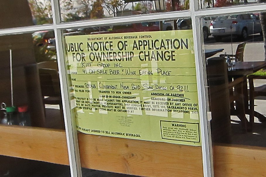 As I was leaving I was surprised to see the change of ownership notification……