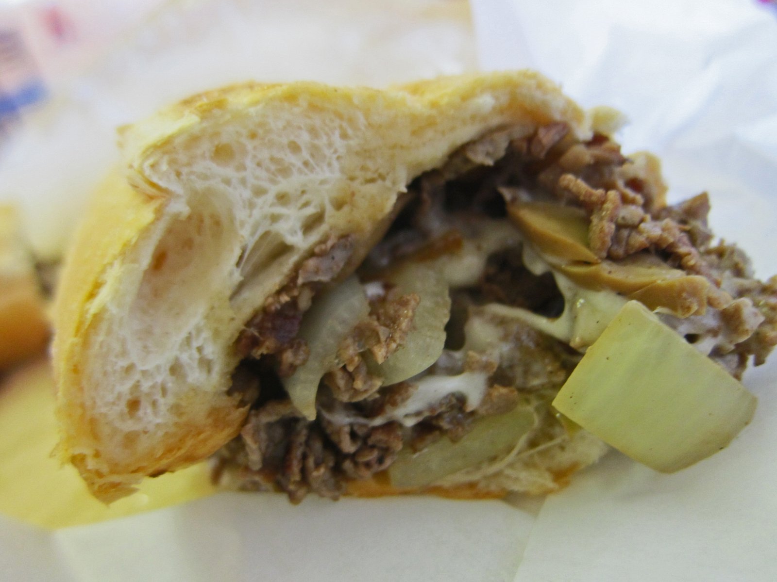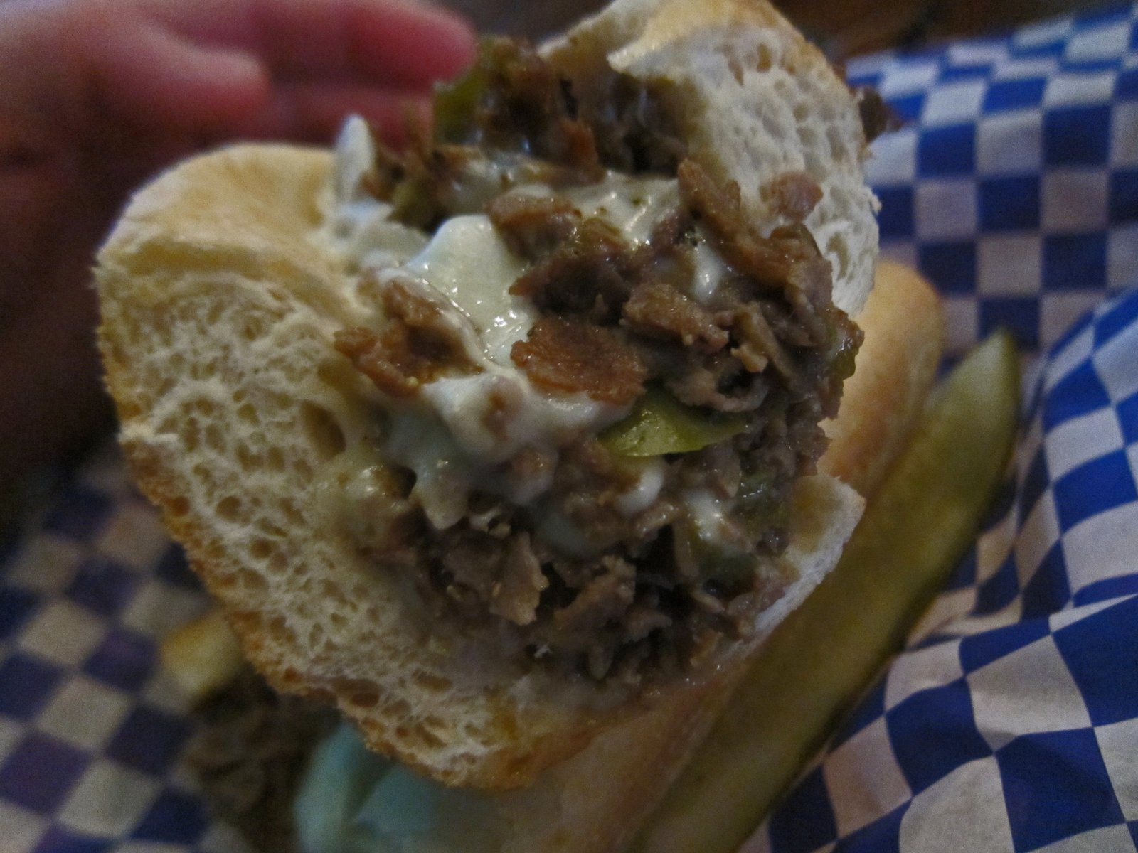 The was a plus/minus sandwich. The roll was cold and really detracted from the sandwich. This wasn't highly seasoned, which meant I could really make out the beefy flavor. It wasn't as oily as other versions, but then again, this meant that it was also a bit too dry and lacking in that oozy-richness that makes cheesesteaks so good.