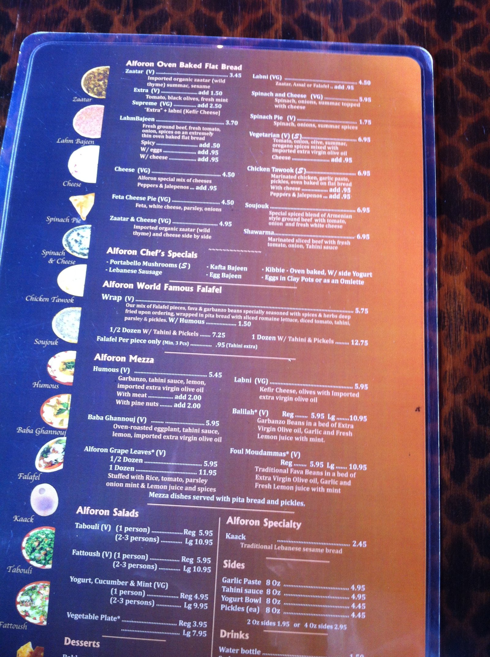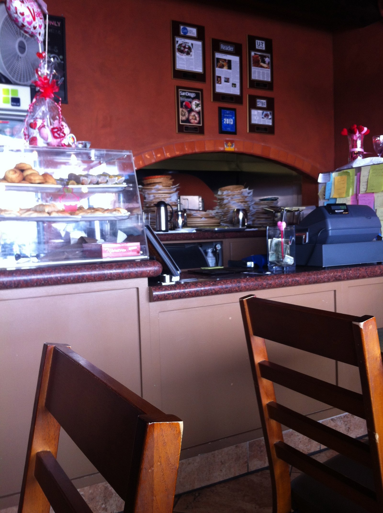 Located on El Cajon Boulevard about two blocks West of College Avenue on the South side of the street, the inset row of building with the strange parking in front at an angle and then parallel to the sidewalk as well as on the street in front, Alforon has not changed in the past three or so years.