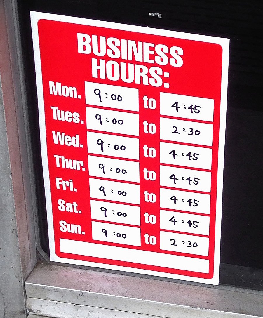 Huh, I’ve never seen a place that only offered one item before! How interesting. I guess it’s a “take it or leave it” kind of place. I like how the outside sign’s text isn’t even remotely centered, haha.