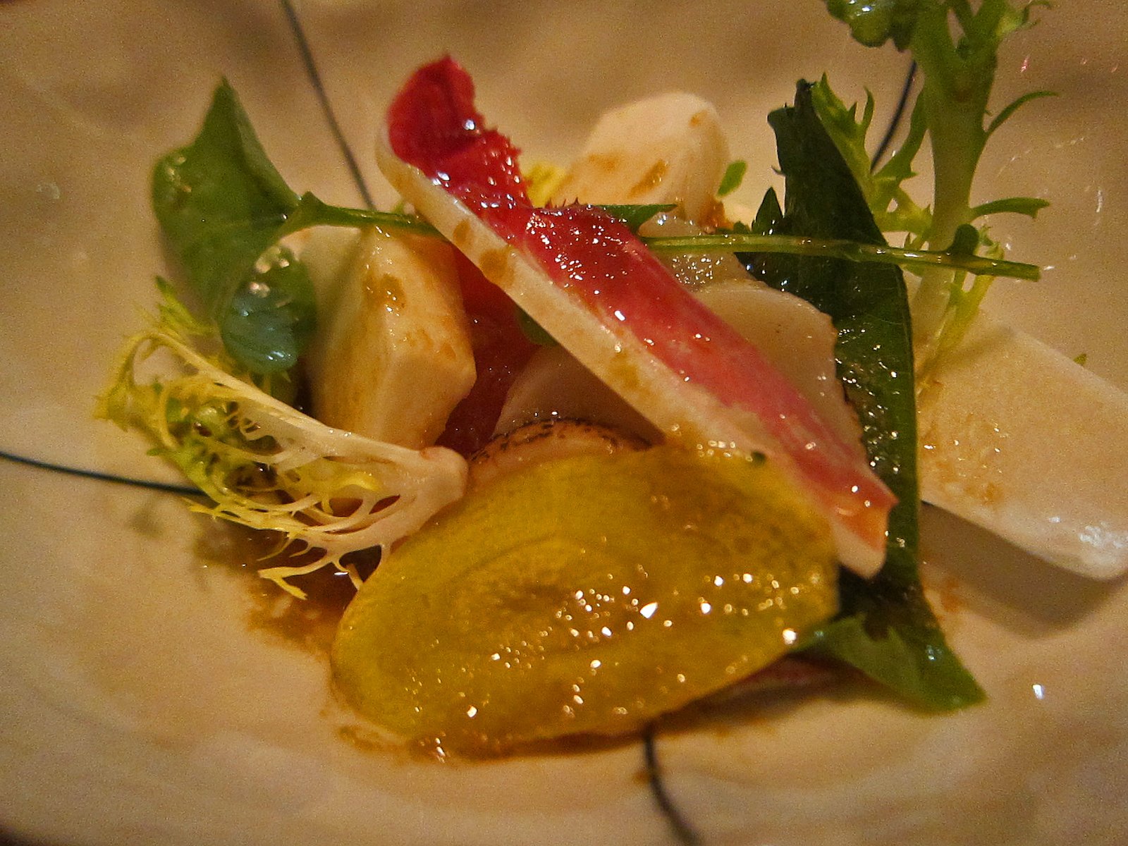 Next up, the Sashimi Tsukuri. This was done in the form of a salad with a citrus dressing….
