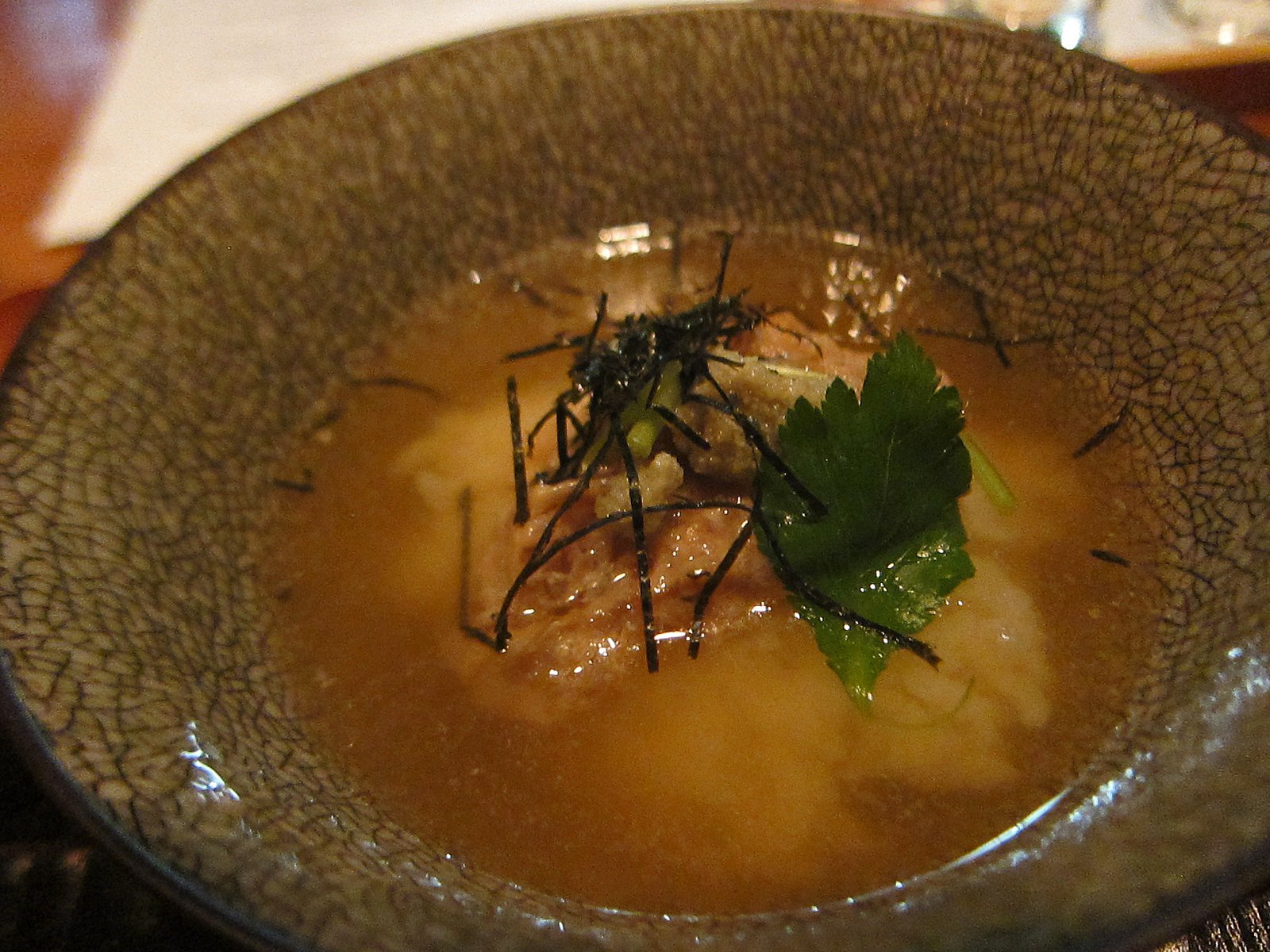 The Onmono, which I thought of as "Futamono" was a nice, clean, dashi based broth with wonderful rich and velvety, kamo dango of sorts…duck meatballs.