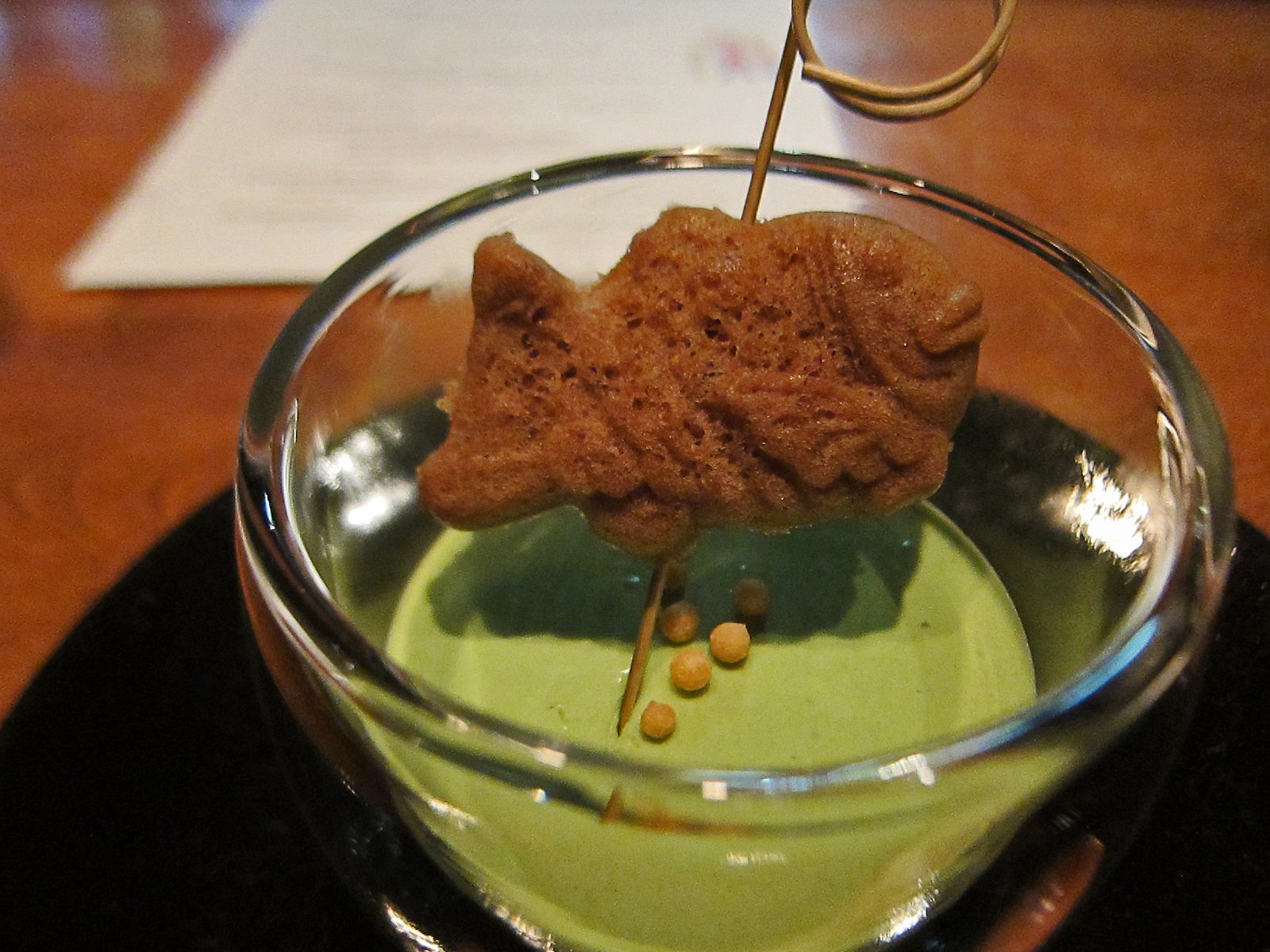 As for dessert, matcha and and white bean mousse with petit “tai-yaki”……