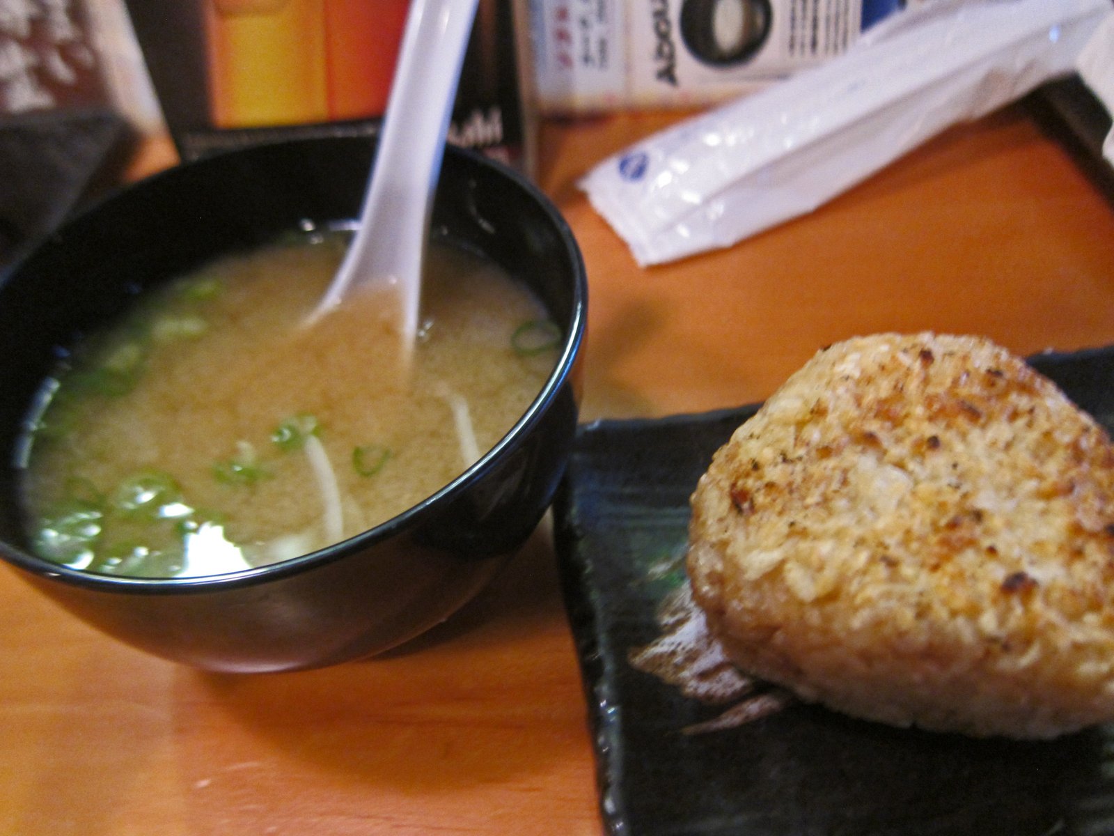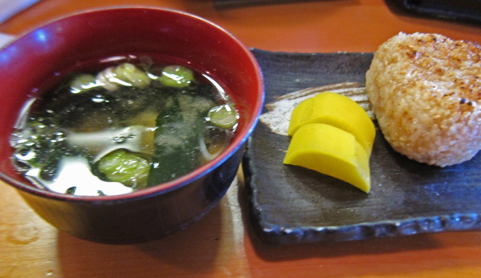 So far, not so good……except for my last item….a simple sumiyaki onigiri….yep, a grilled rice ball, which is served with miso soup.