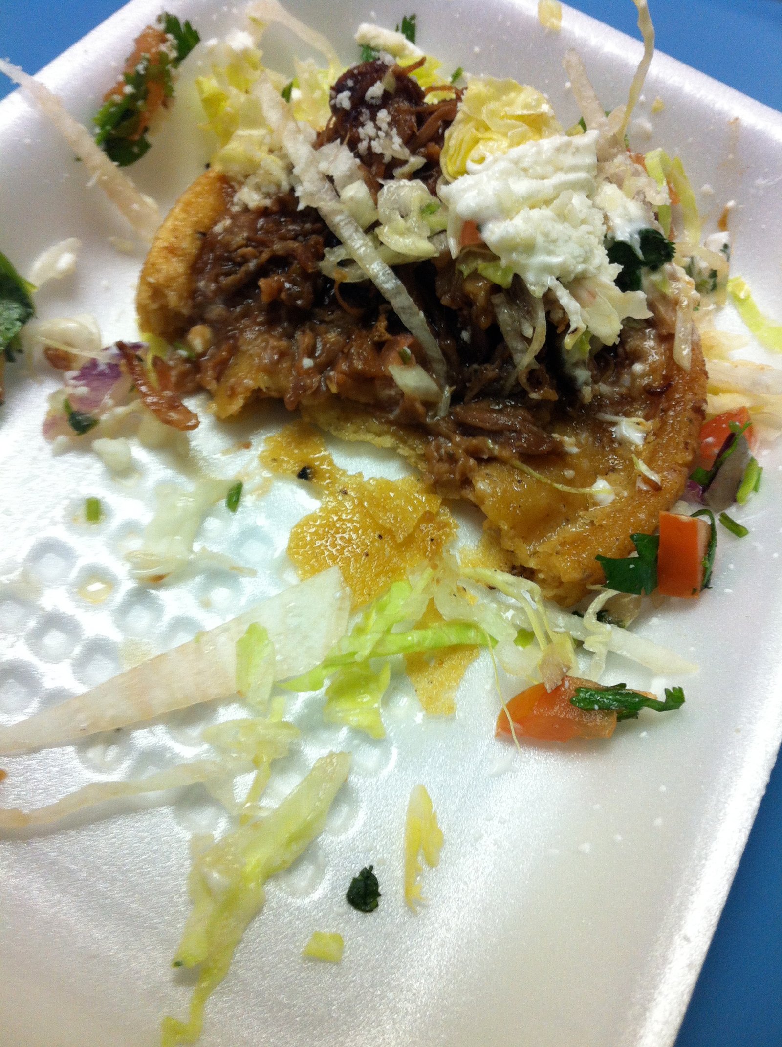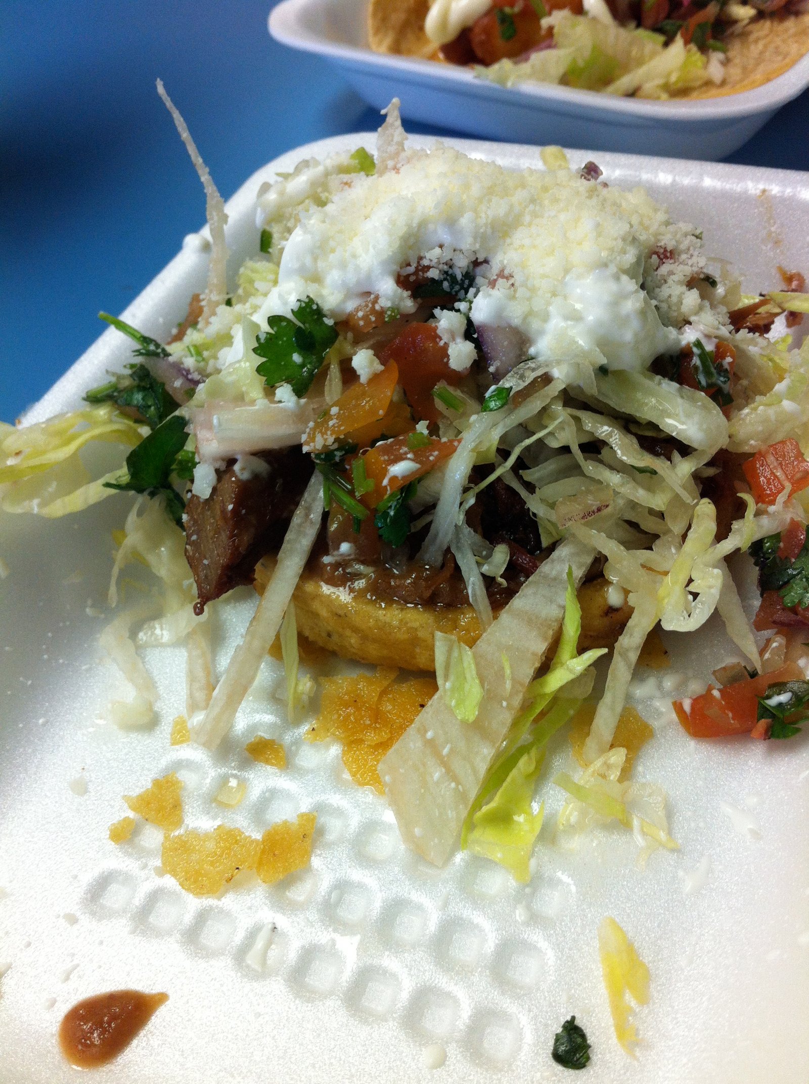 On the other hand, I still have terrible memories of a soggy chicken torta made with boiled chicken, and I would urge anyone to avoid the fish tacos, the fried fillets swimming in a sweet thick yellowish mayonnaise based sauce.: