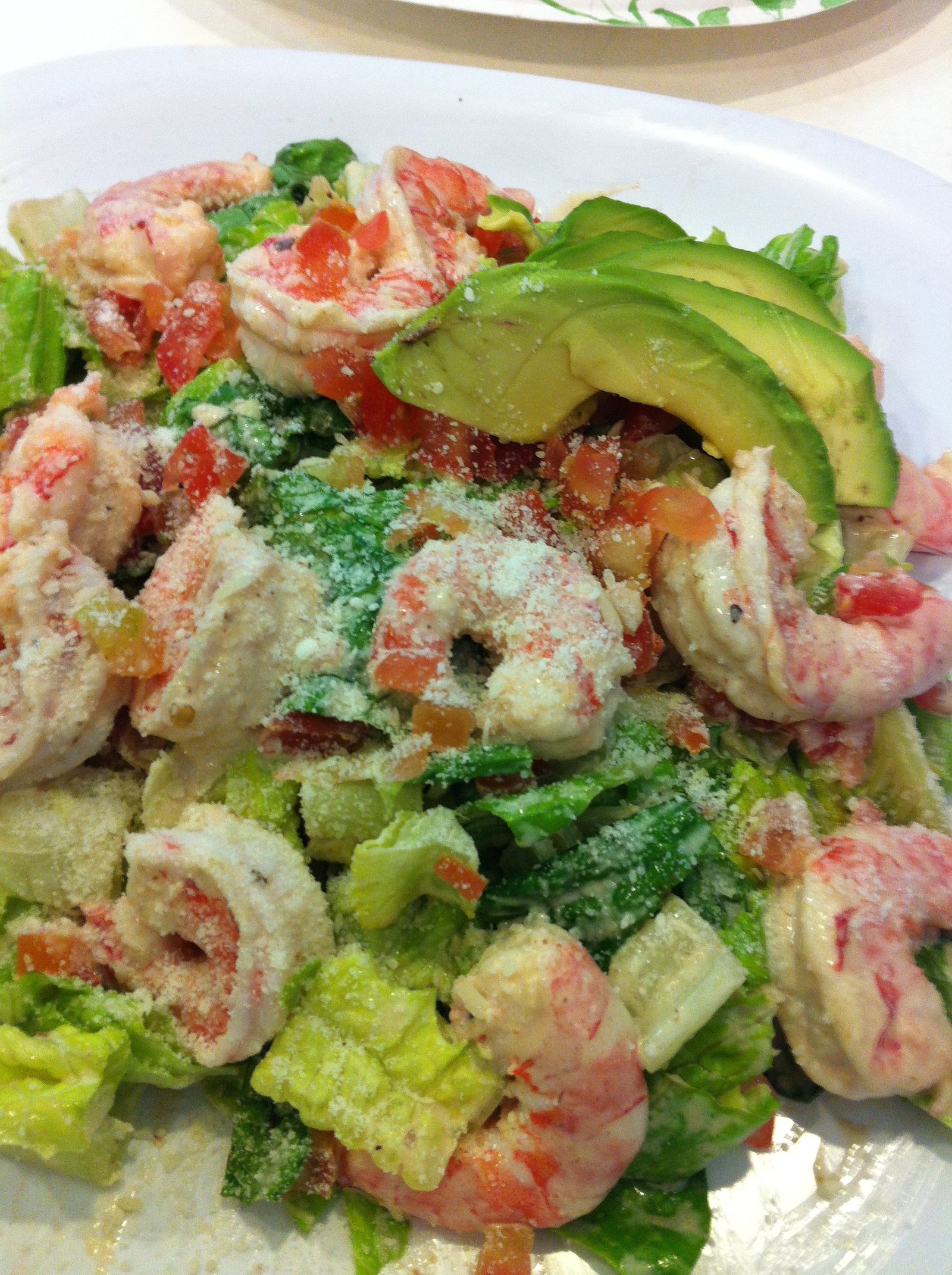 The shrimp salad ($ 8.50) Romaine lettuce, tomato, avocado, topped with a dozen quite large, flavorful shrimp, Parmesan and a house dressing, this is quite large and refreshing on a hot day.