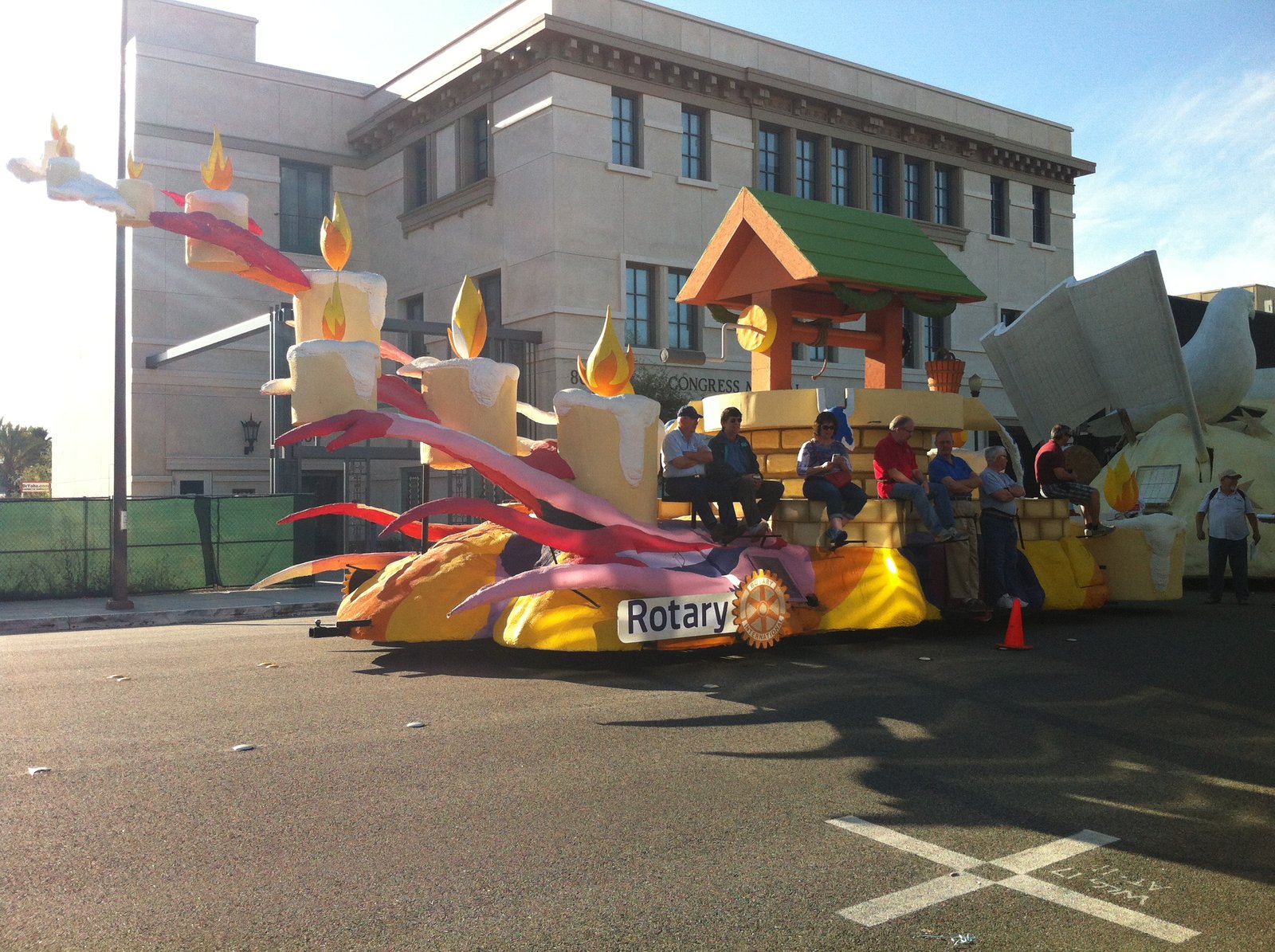 There were ten floats being tested this day and quite a few were ready for their final tests before decorating (which begins in December) by having people on board to test weight bearing on the maneuverability as well as ability to escape efficiently in case of a fire. Above, Kiwanis International, with their float now color coded for the volunteers to decorate easily. So much prettier than when it was tested in its 'cocoon' stage last month (3rd photo).Similarly, last month's rebar/chicken wire/partial cocoon stage of the Lions Club International float, "Inspiring Challenges" (to the right in the first photo in that post), did no justice to this finalized version.