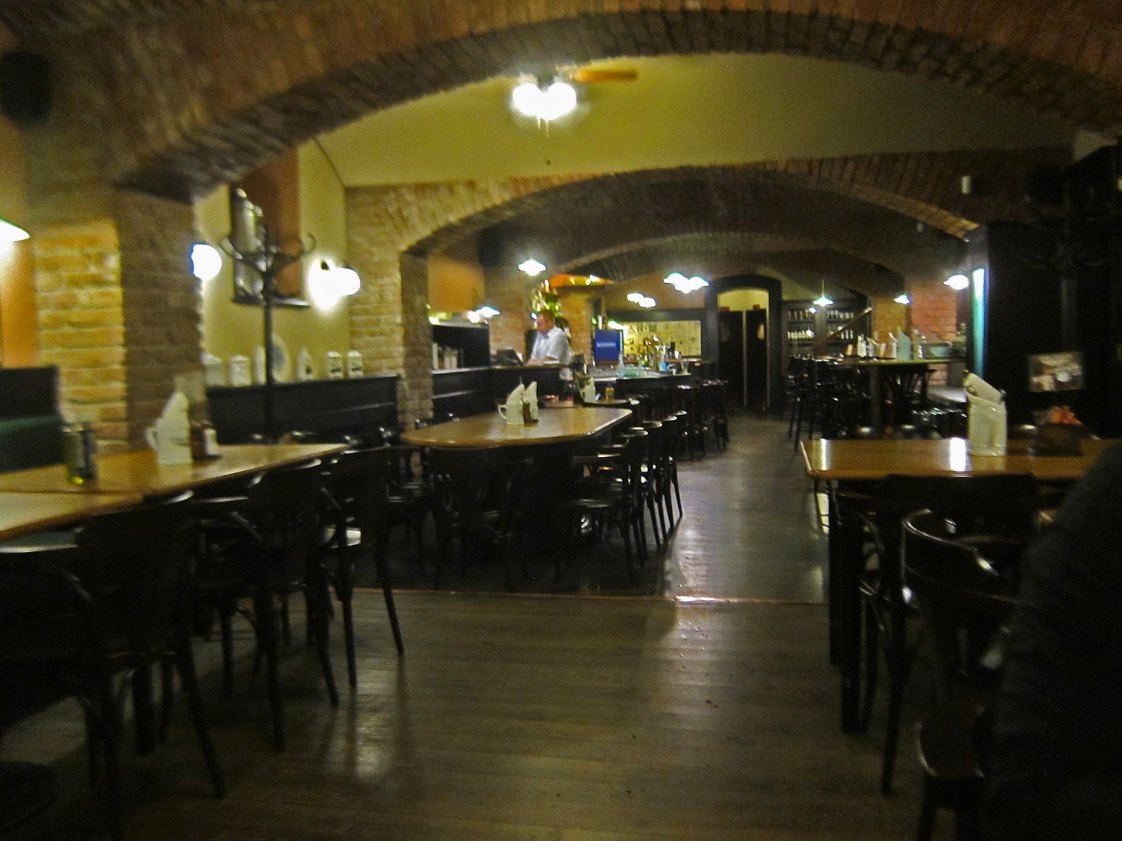 I believe this restaurant is owned by Pilsner Urquell, not necessarily a stamp of approval in my mind. The restaurant does look slightly corporate, but there's a non-smoking area in the basement.