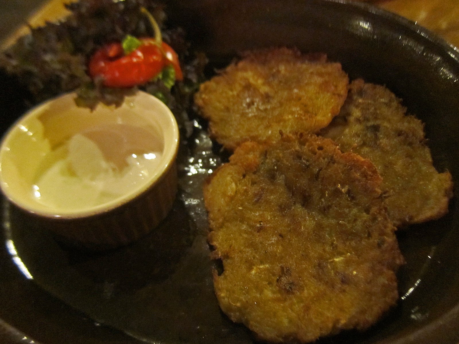 I ordered the Cabbage Pancakes…..think of potato pancakes with sauerkraut and bacon in it.
