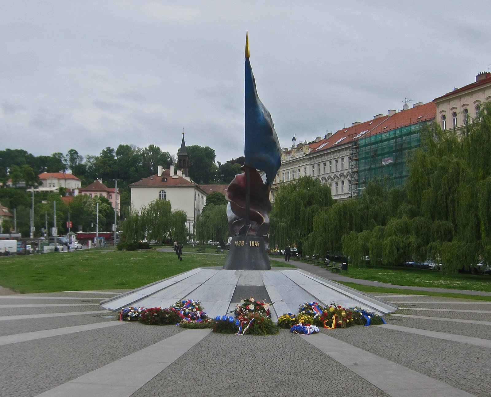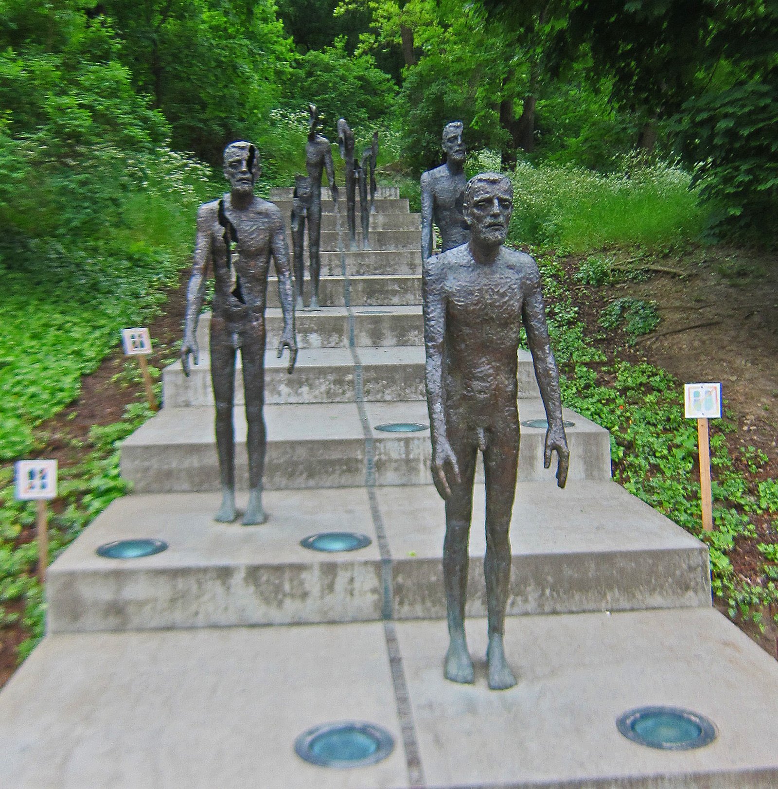 After this we headed up Ujezd….the area is colorful, though we were now dodging an occasional drizzle. There was one last thing I wanted to see. Up on Petrin Hill, in a serene, park area is this sculpture.
