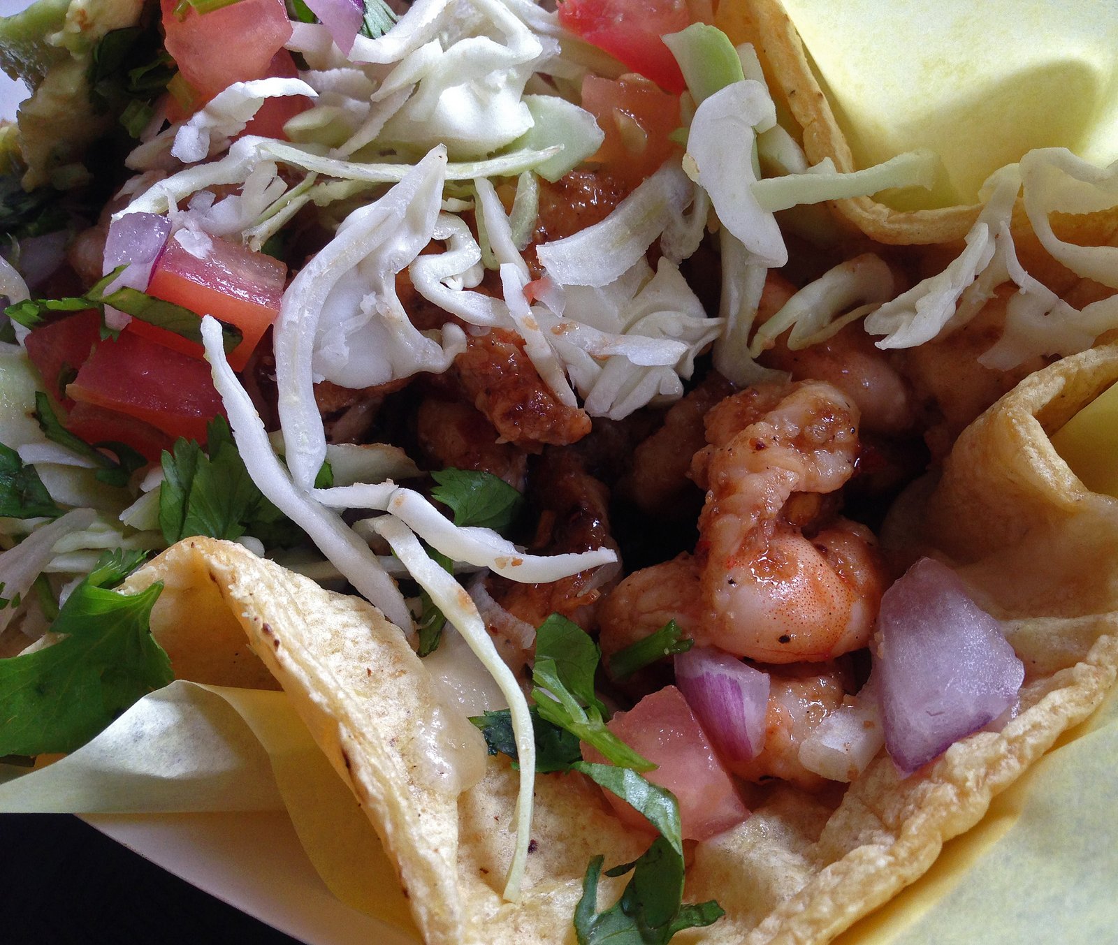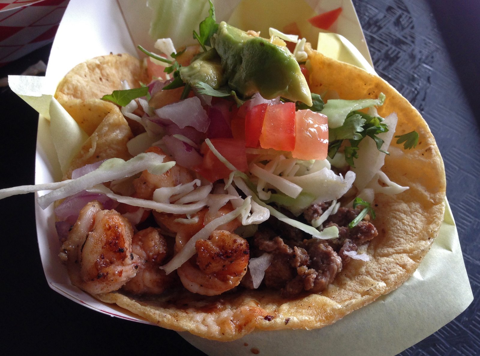 Curious about both the shrimp and non-seafood items, I ordered the Surf and Turf Taco ($4.50). This was a nice two-fisted taco.