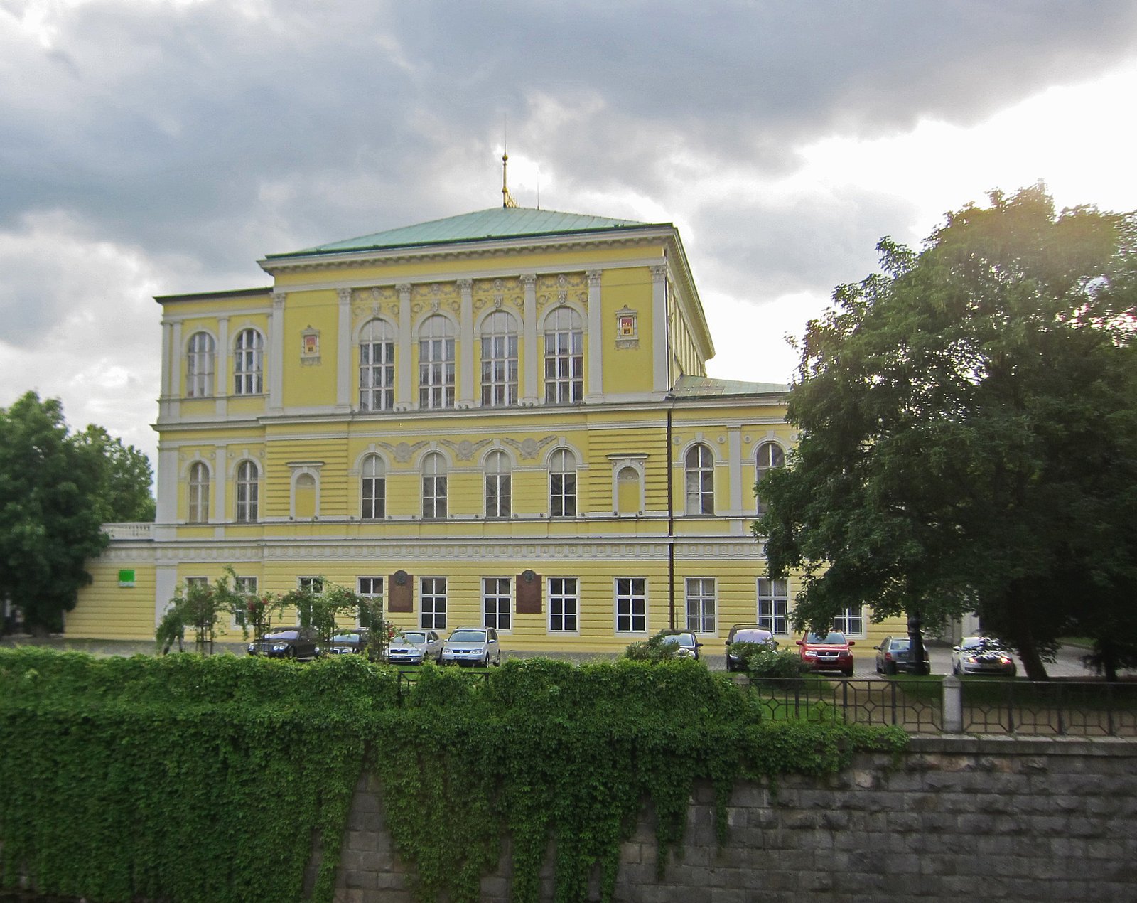 There are a couple of islands in the Vltava River, the largest being Slovanský ostrov. The island was gradually formed by deposits from mills in the area. It is a pretty good sized island.