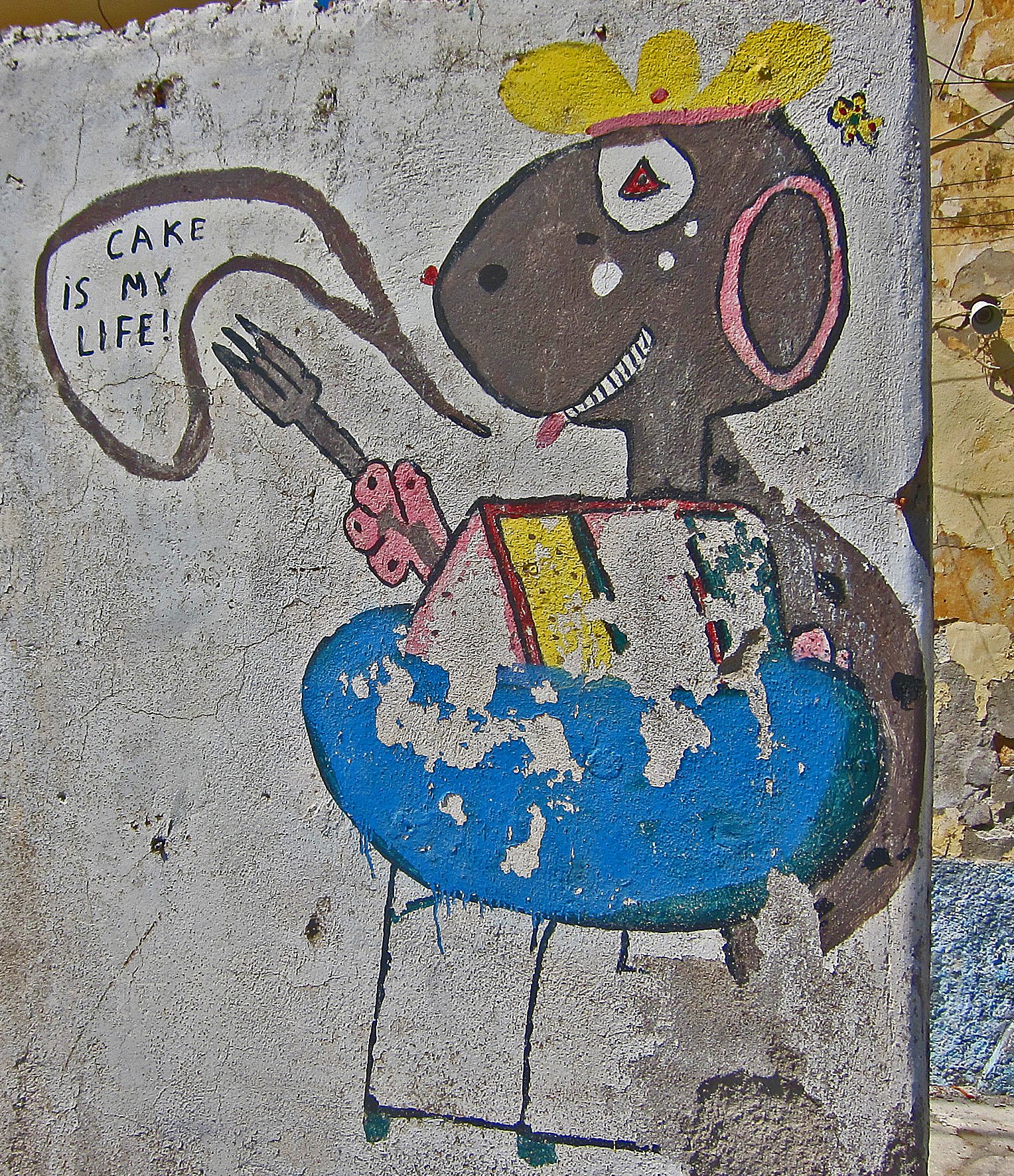 Earlier in the day I'd taken a photo of a sign on one of the buildings. Perhaps this used to be a bakery? I thought about the sign as we walked back to our room. Thinking about that little slogan on the drawing, I made up my own version of it; "life is my cake……you have to take a bite and savor the sweetness and richness of it."