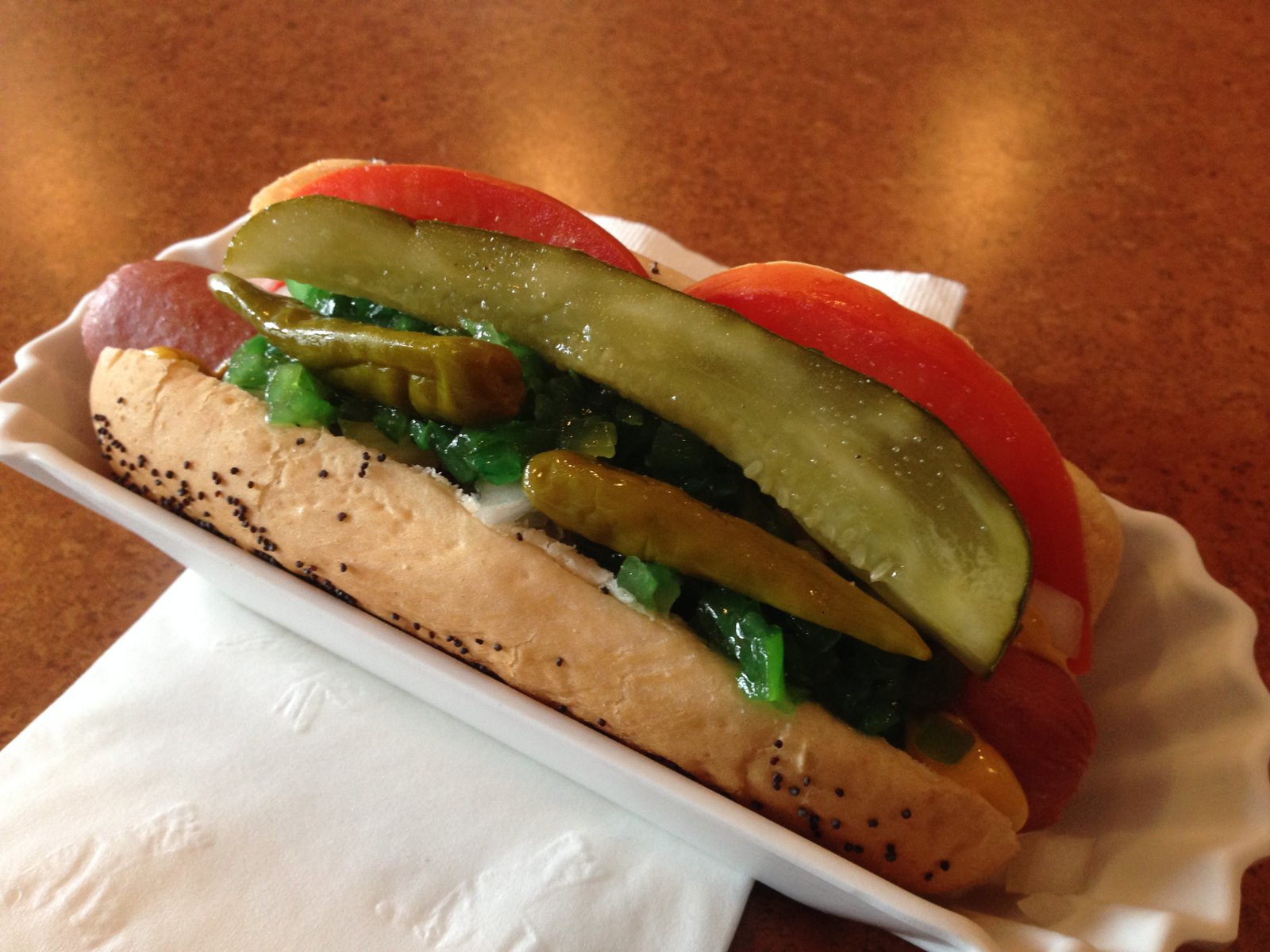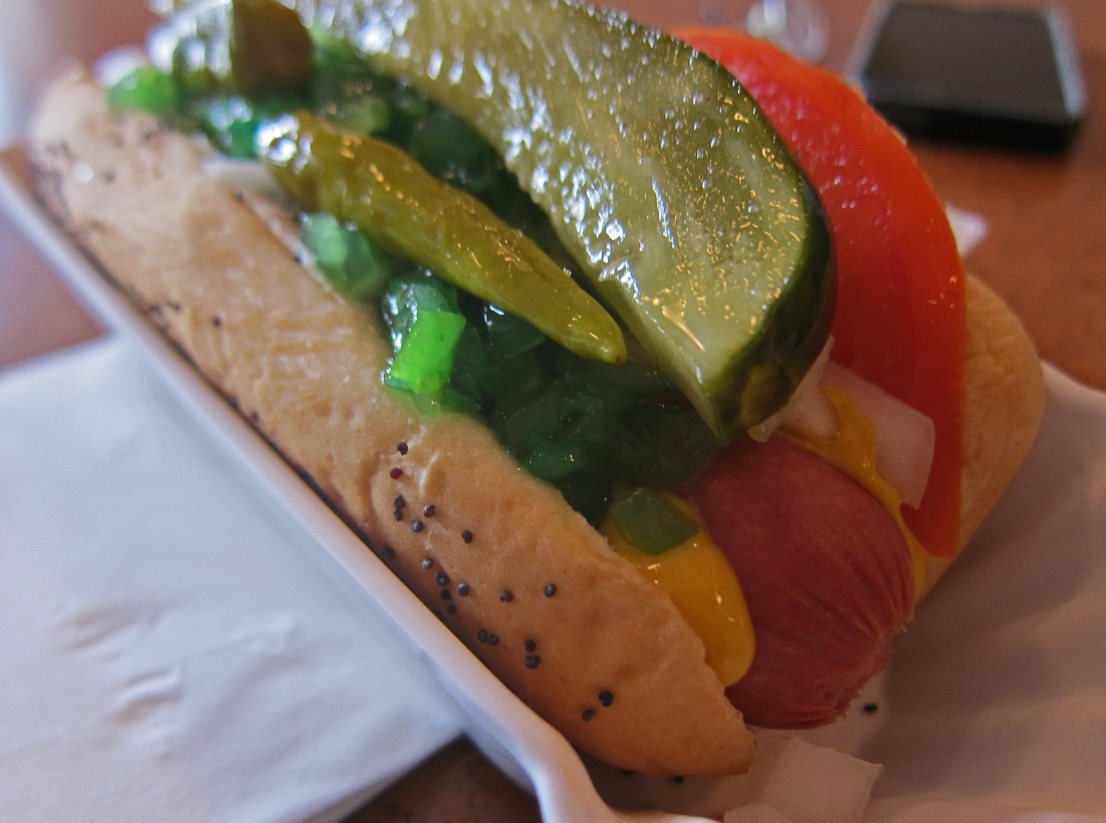 I did decide to return to try the Chicago Dog, I wanted to see how it compared to Chicago on a Bun. There was a bit of sticker shock with this one. The last time I had a Chicago Dog, it came with fries and a drink for $4.75. This dog was $5.24!