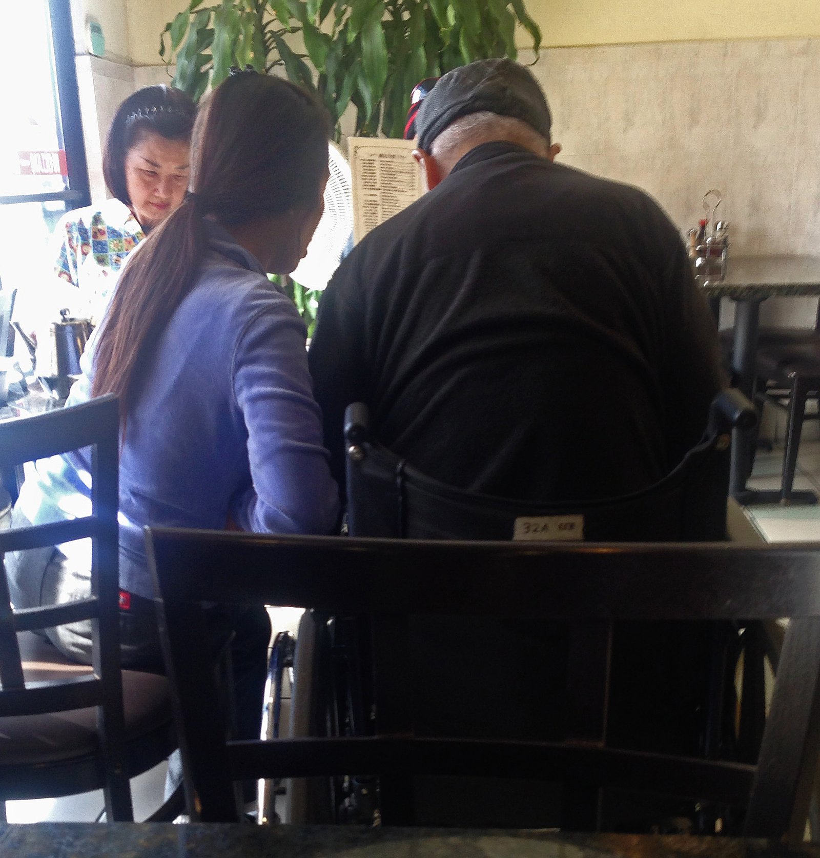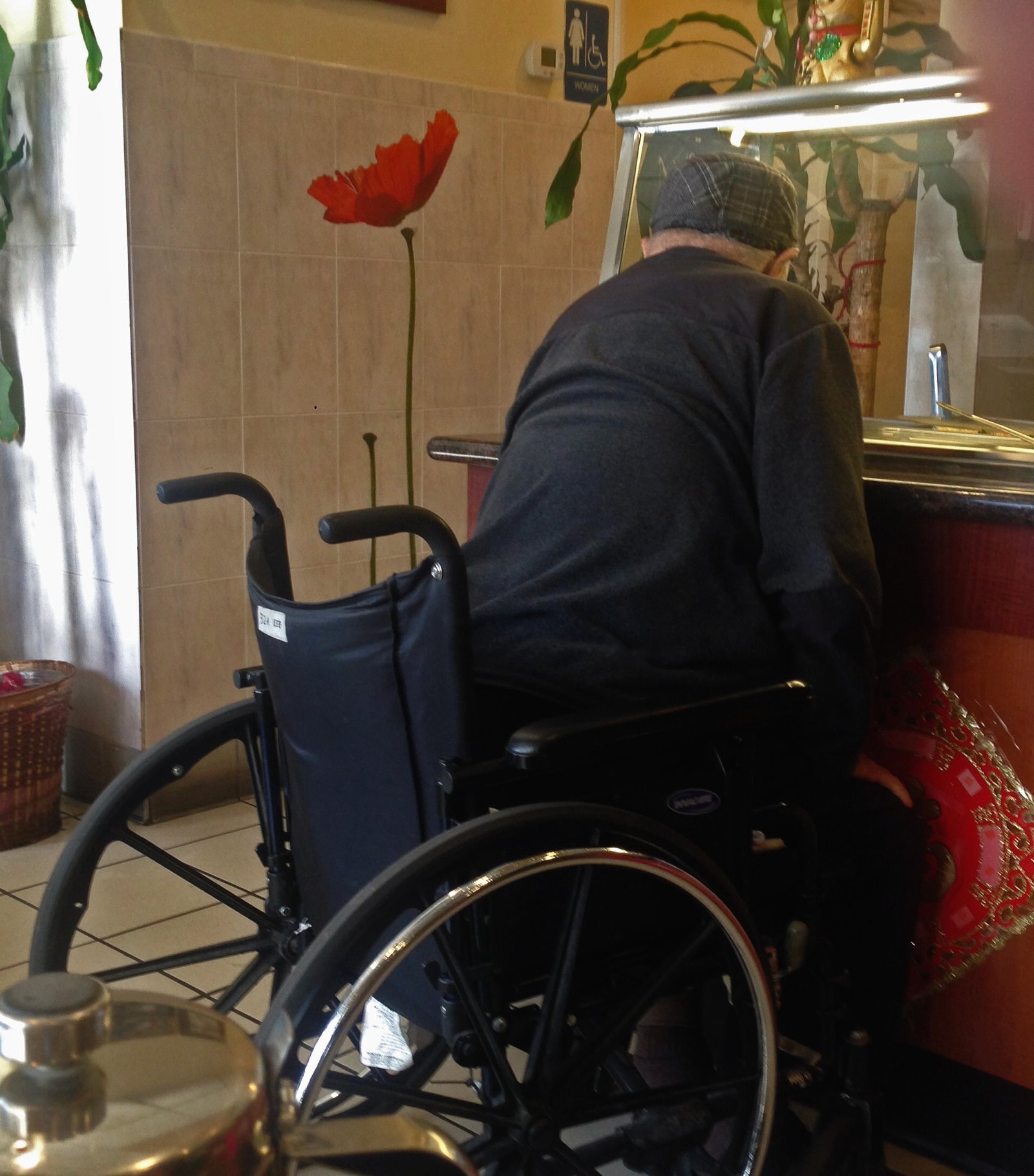 One really cute thing happened as I was finishing up my meal. The front door of the restaurant opened; two old-timers in wheelchairs were pushed in by younger women and a table was set-up for them.