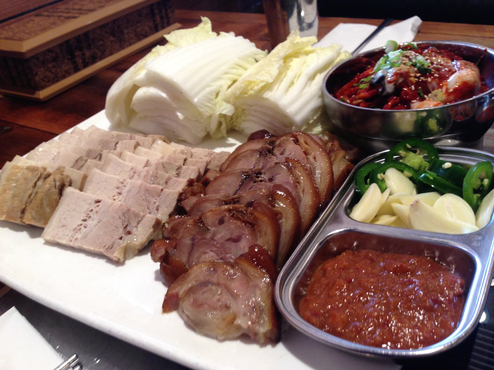 The Missus was craving Jokbal Bossam and it had been a while since we've had it here, so the timing seemed perfect. I do wish they'd choose something other than napa cabbage, but other than that, this was porky goodness. In spite of the name, it's dishes like the jokbal bossam, heukyumso jungol, kimchi dolsot bi bim bap, and on good days the seolleongtang that works for us here.