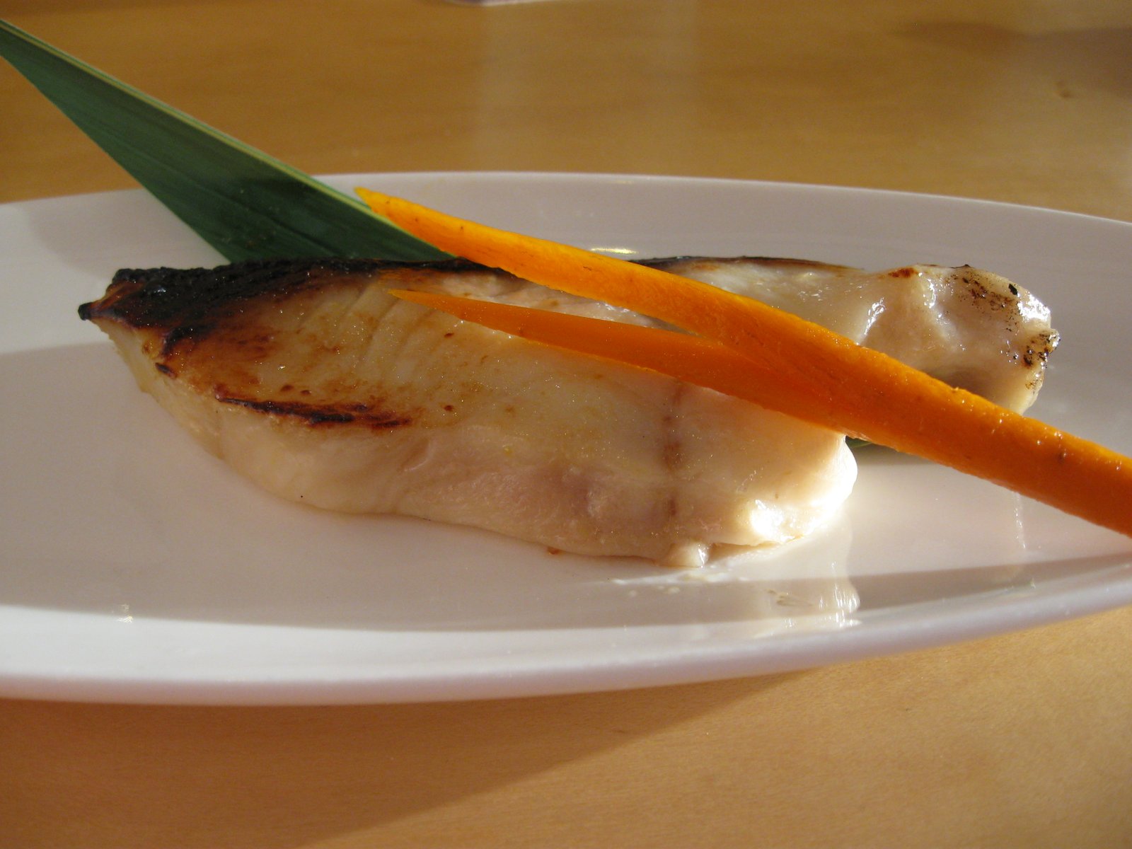 This sablefish was flavorful and perfectly cooked medium rare with just a touch of char. Unlike true cod, a dry fleshed fish that stores its body fat in its liver – hence cod liver oil, this black cod easily flaked into rich bite sized pieces. While the marinade certainly broke no new ground, it seemed adequate to me (of course, I have not eaten misoyaki all my life). I even liked the mild pickled carrot athwart the slice of fish.