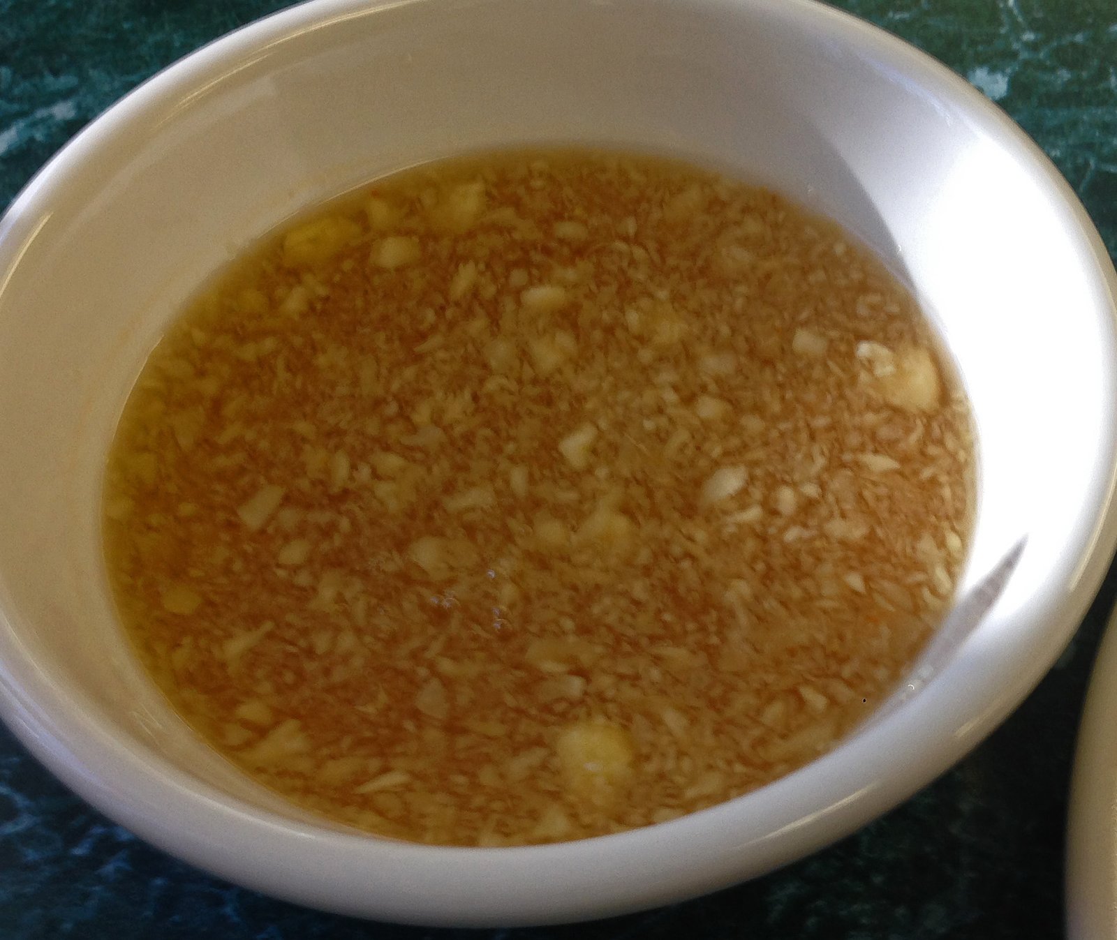 And then of course there's the dipping sauce; savory nouc mam cham; sweet, the heady flavors of ginger, I'd say it's almost drinkable.
