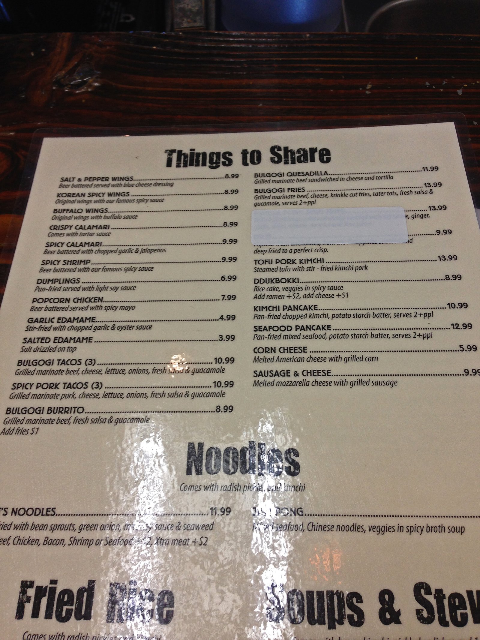 The menu is full of what I call "Kogi-truckish" dishes…you know, bulgogi tacos, bulgogi quesadillas, bulgogi fries, stuff that's already kind of passe'