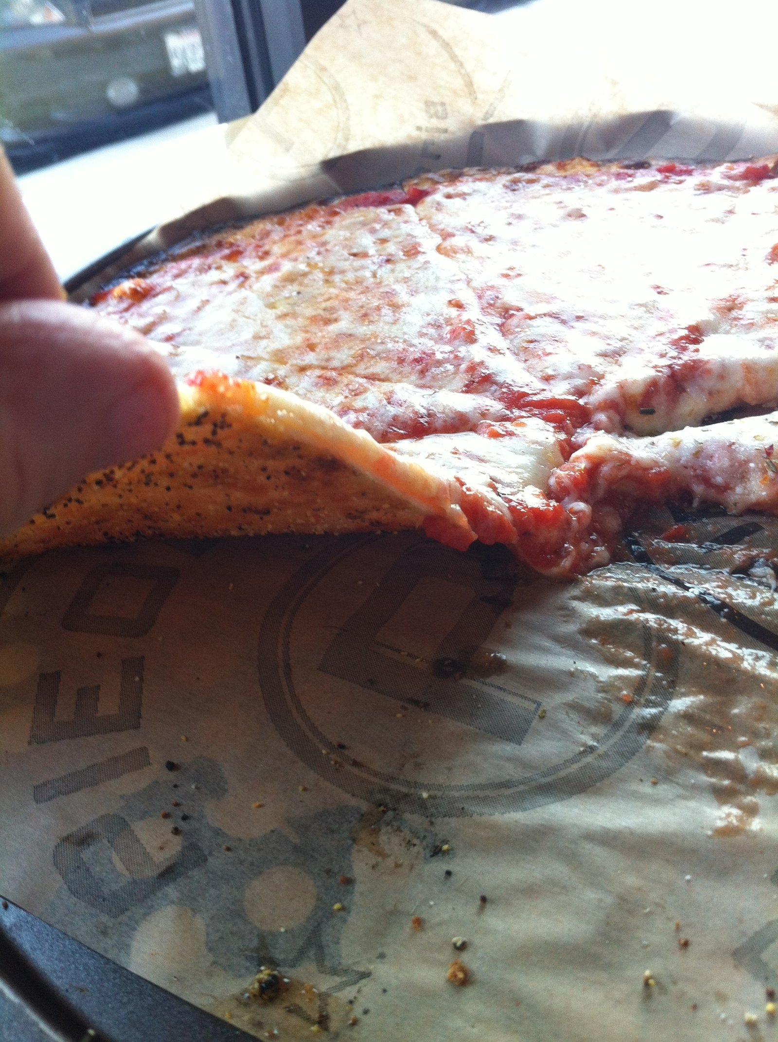 Unfortunately for you reading this (and all of these pop up 'customized' pizza places), The Mister and I are traditionalists and pretty much don't 'customize' and instead order basic items from the menu, in the case of Pieology, it's an order from the "Pizza Lab". Above, the Number 1: Classic cheese pie ($6). Olive oil, Mozzarella and red sauce. Quite nice, with a tasty crust, balance of flavors and simplicity that is difficult to properly achieve.