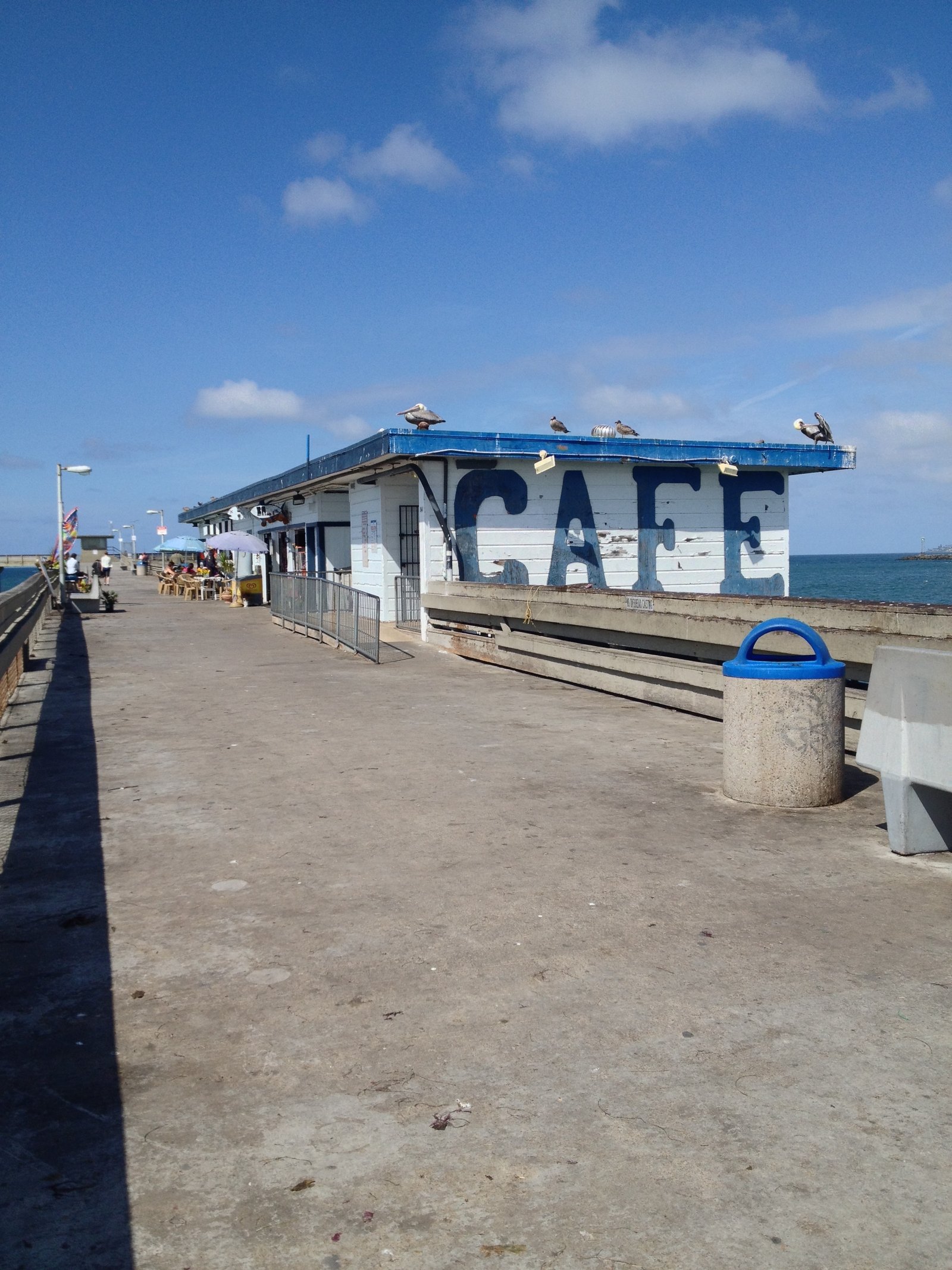 If you've lived or are living in or visited San Diego and gone to the Ocean Beach area, you may have seen this font. Most likely, you saw it from this vantage point. It's way down there, a building sticking out of the pier.