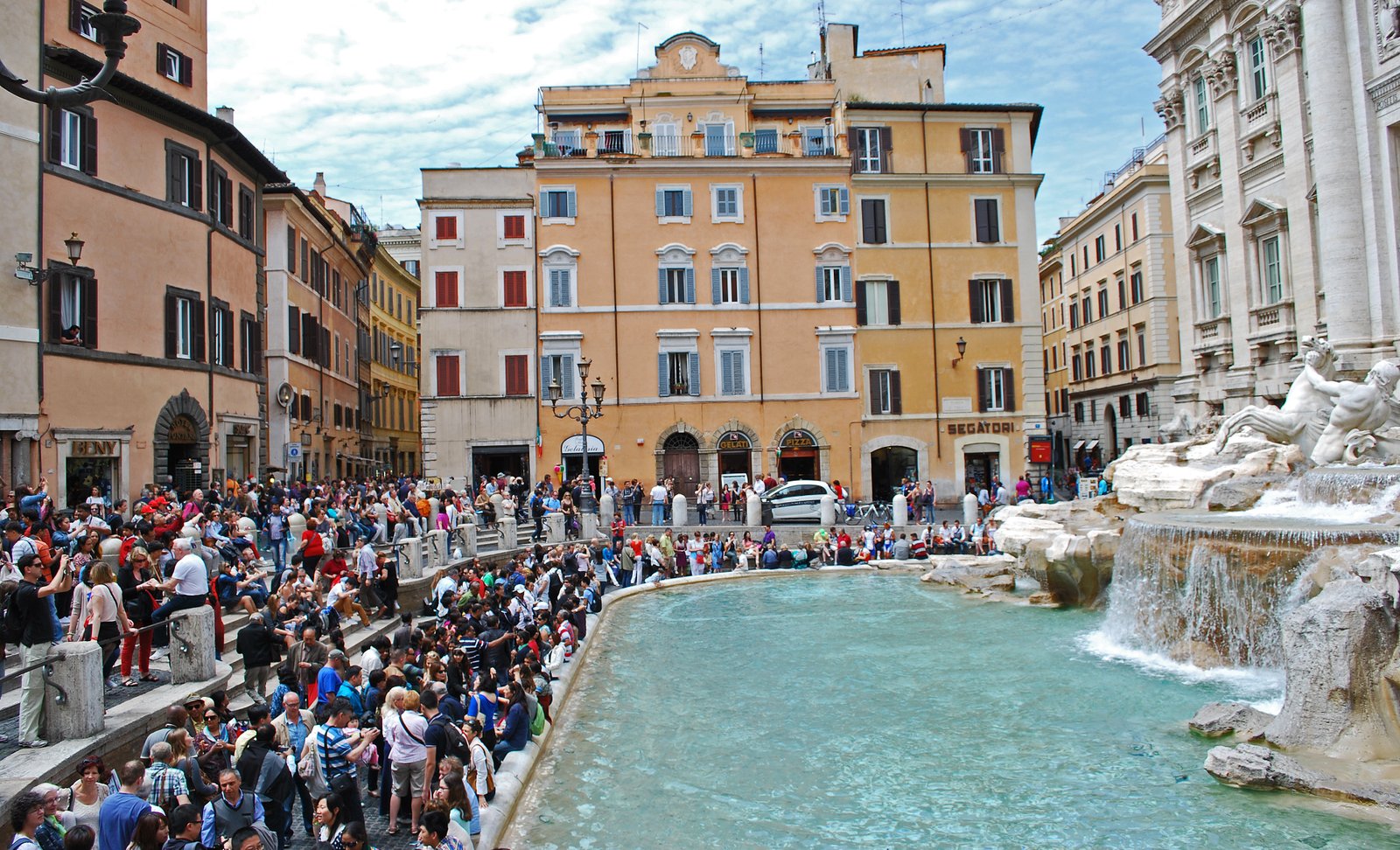 We wove our way along side street, basically following the crowd and eventually we ended up at what is probably one of the most famous fountains in the world, the Trevi Fountain, which took 30 years to finished, was completed in 1762. The actual name of the fountain – "tre vie" explains a lot as the location was at the junctions of three roads.