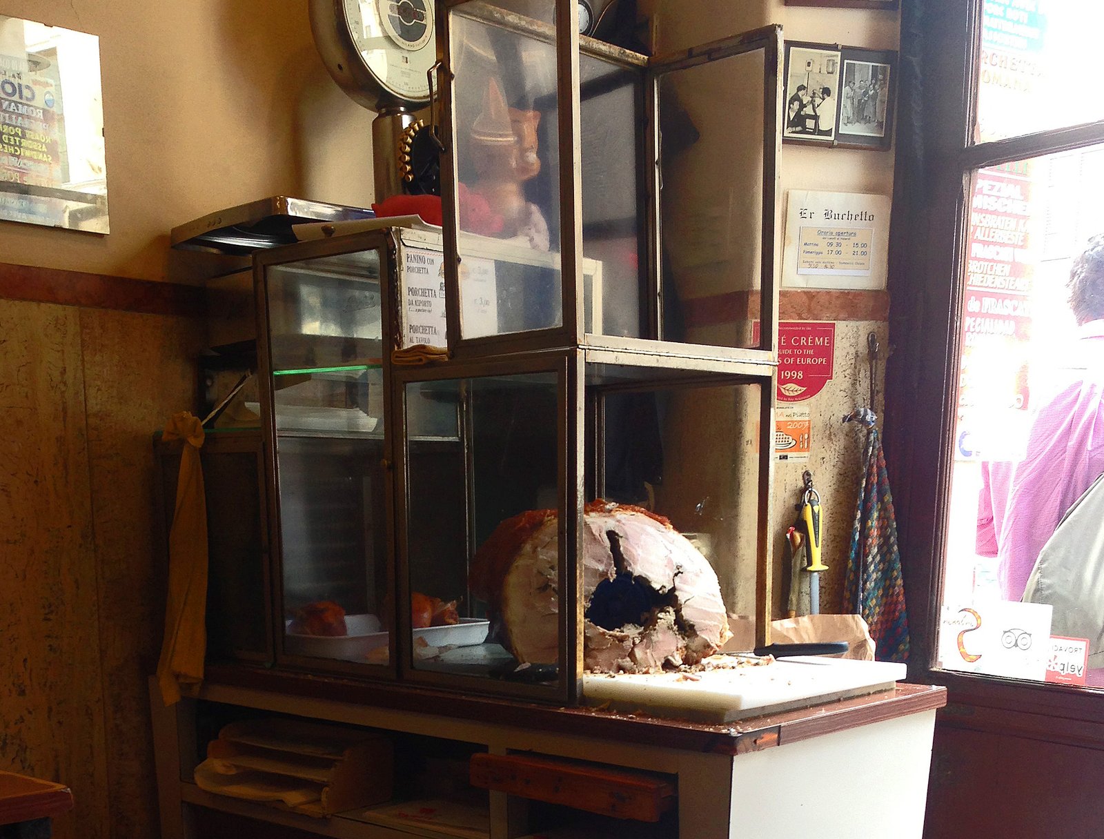 Actually, I needed a bit more than some gelato. I was getting pretty hungry. So we walked past the Piazza de Republica and on to Via del Viminale. There stood the little shop named Er Buchetto. The place really lives up to it's name, the little hole in the wall named "the little hole". Er Buchetto does porchetta….and had been doing it for 5 generations.