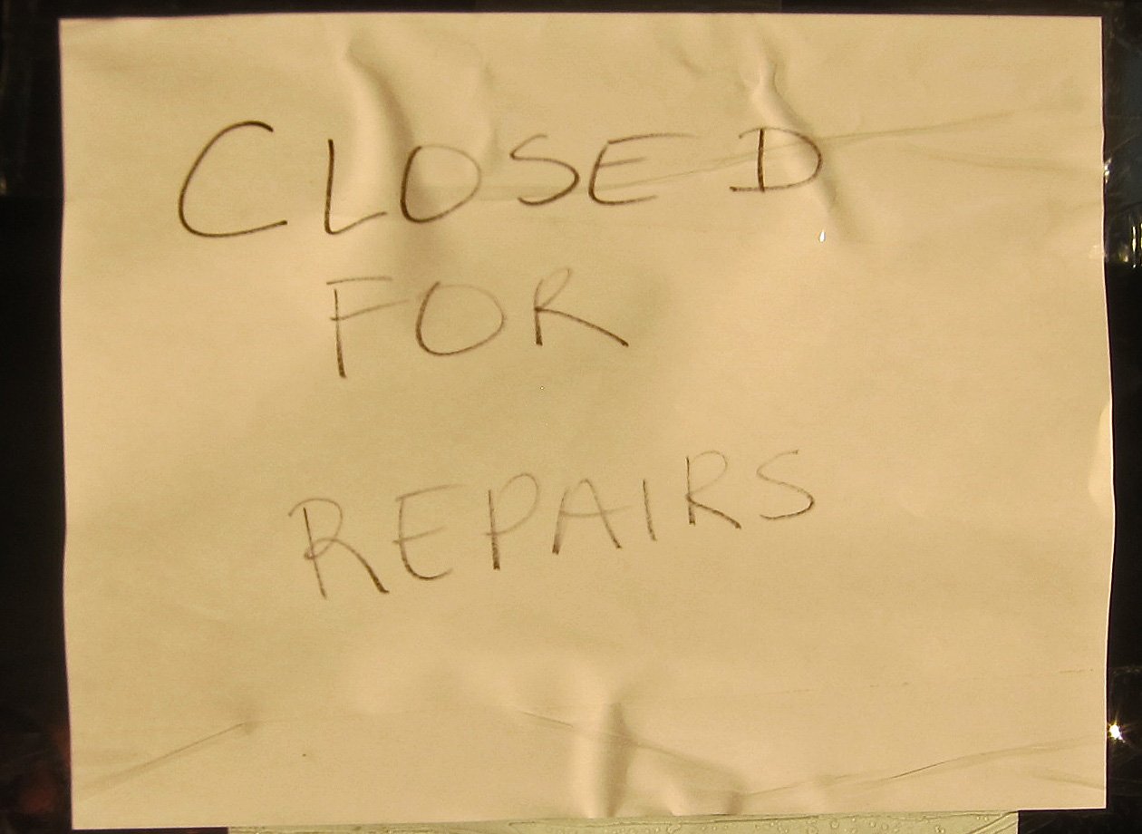 Uh-oh, the infamous closed for repairs sign with no activity going on in the place….all too often this is the kiss of death. I hope it's not. I'm not the biggest fan of the BBQ here; but it's a bit better than typical BBQ in San Diego and I'm all for family owned businesses.