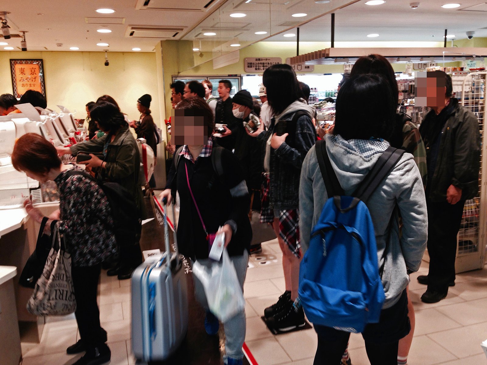 Man, Tokyo Station was buzzing, even this early in the morning. The Missus went to grab some drinks and this was the check out line.