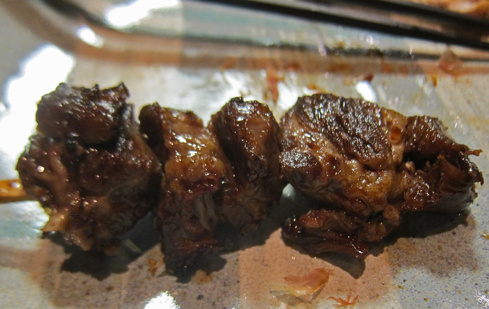 All the classic flavors in one bite. The exterior of the tongue has a touch if crispness from being grilled over the bincho which also adds just a hint of smoke flavor. This is one heck of a piece of meat on a stick. They don't always have it since I was told it takes a bit of time to make. You'll find it on the specials board.