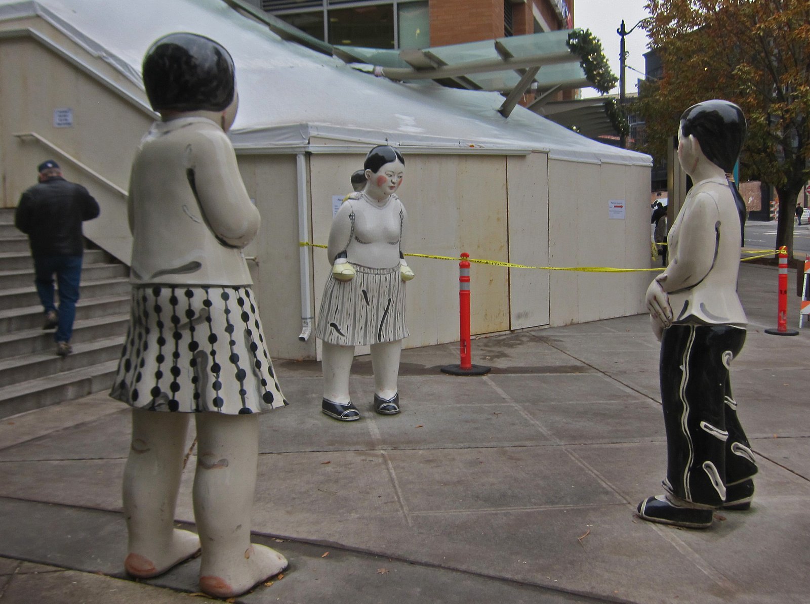 As for the three fairly odd statues right outside, they are works by ceramic sculptor, Akio Takamori, named "Young Woman, Girl, Mother and Child".