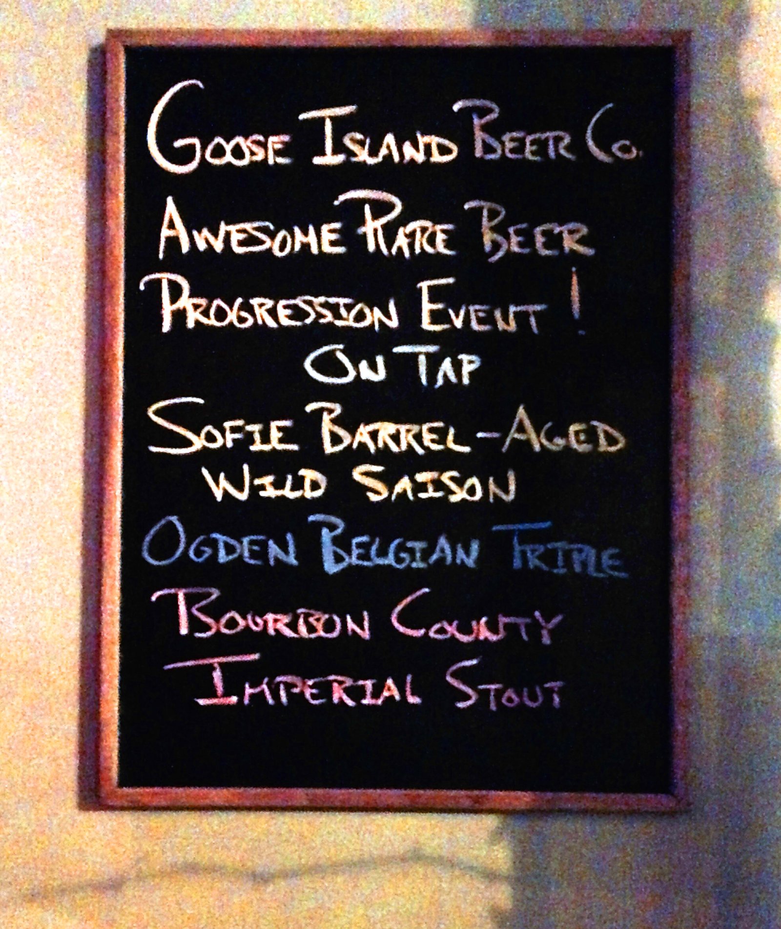 Anyway, the big name in the progressive was the Bourbon County Imperial Stout, boozy, with coffee-caramel-molasses tones, and a boozy hit. It was a bit too much for me, but the Missus really liked it. She also had a Blueberry Ale from Cascade brewing.