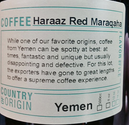 While doing a short Trolley Brewery crawl with Candice; we stopped at Bird Rock Coffee Roasters in Little Italy. They had an interesting v60….with Haraaz Red Maraqaha. At almost $9, whew was it pricey.Though after tasting it; the smooth, berry flavors, the tongue coating richness with a nice clean finish. It's really a bit too smooth for me, but this is exactly what the Missus loves…..so I bought 8 ounces of beans – $21.95! Ouch!