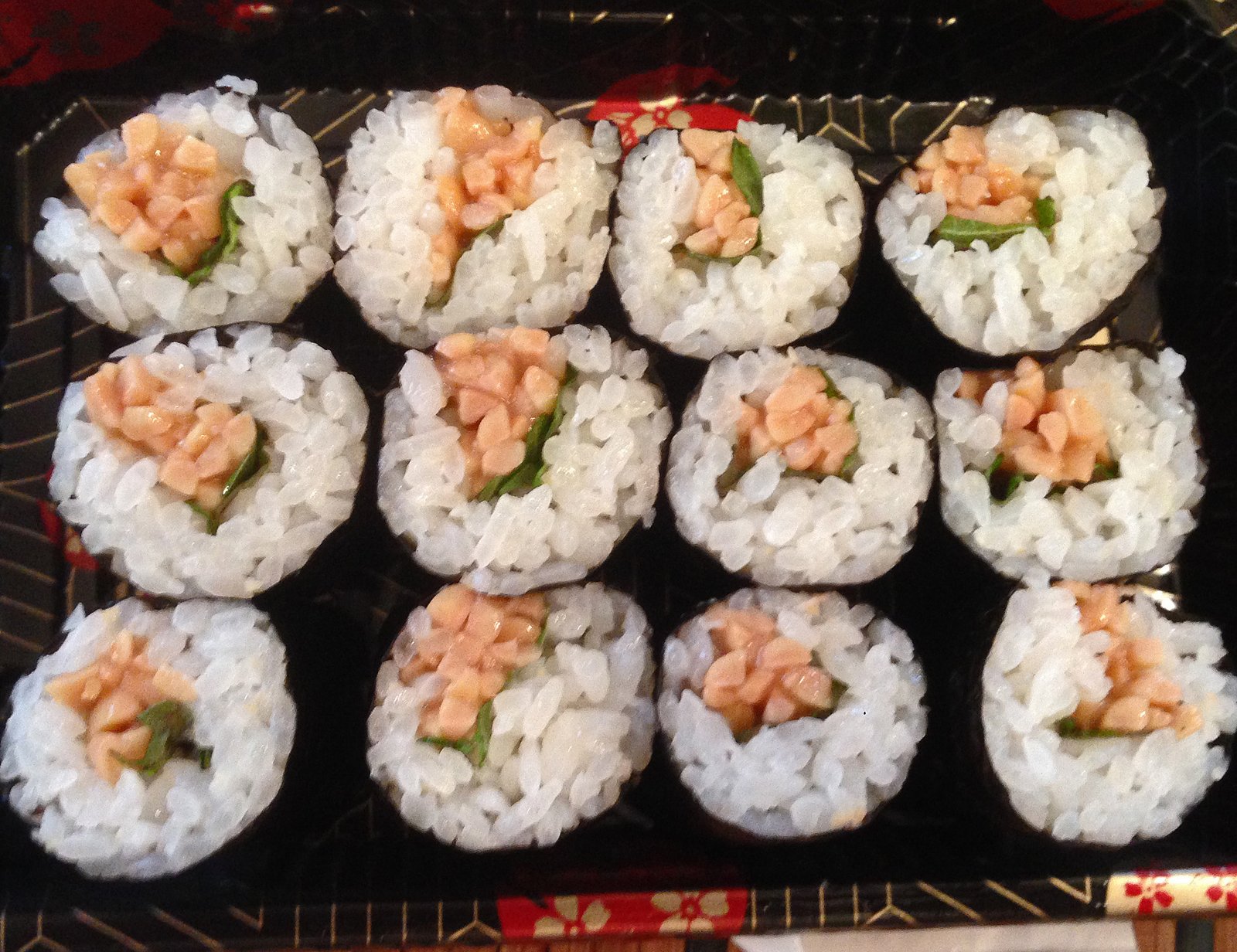 I lucked out as I love natto maki….yes, while I'd never buy any prepared sushi or sashimi with raw fish in/on it kappa and natto maki is fair game. I grew up eating natto so I really love this stuff. I usually get a bento at least once a week and have rarely seen this. They probably don't make it very often…….it could very well be that I'm the only person who evers buys this…….