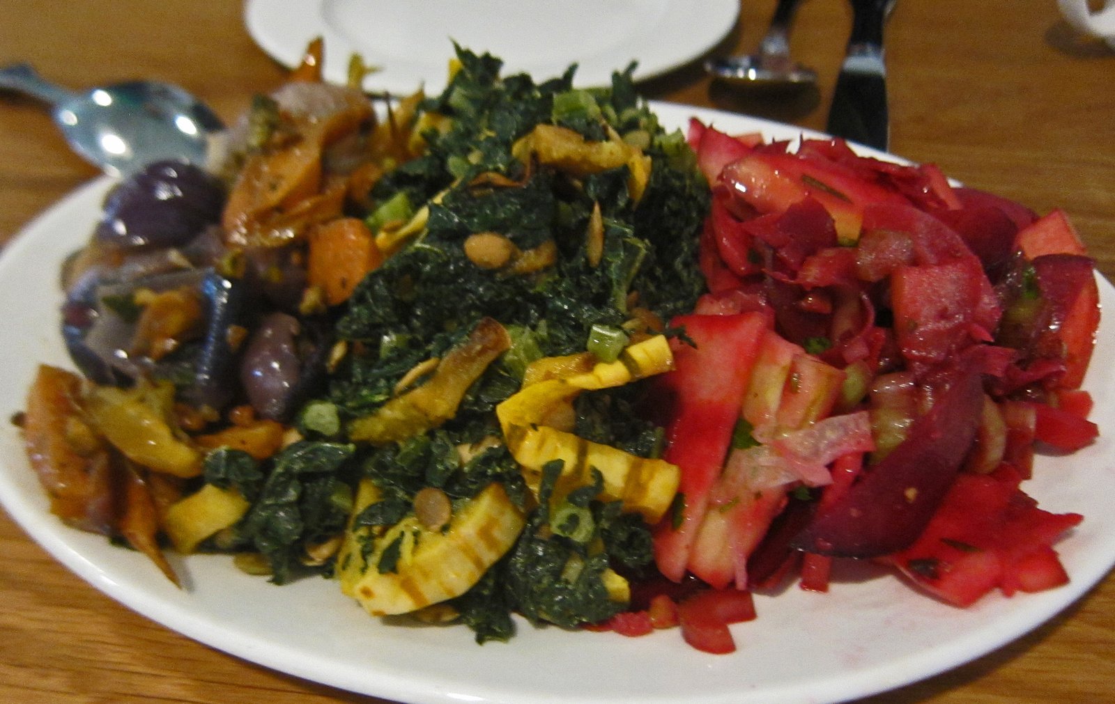 The raw beet, apple, fennel, and celery slaw with walnuts was definitely no shrinking violet, but was a bit too tart for my taste.