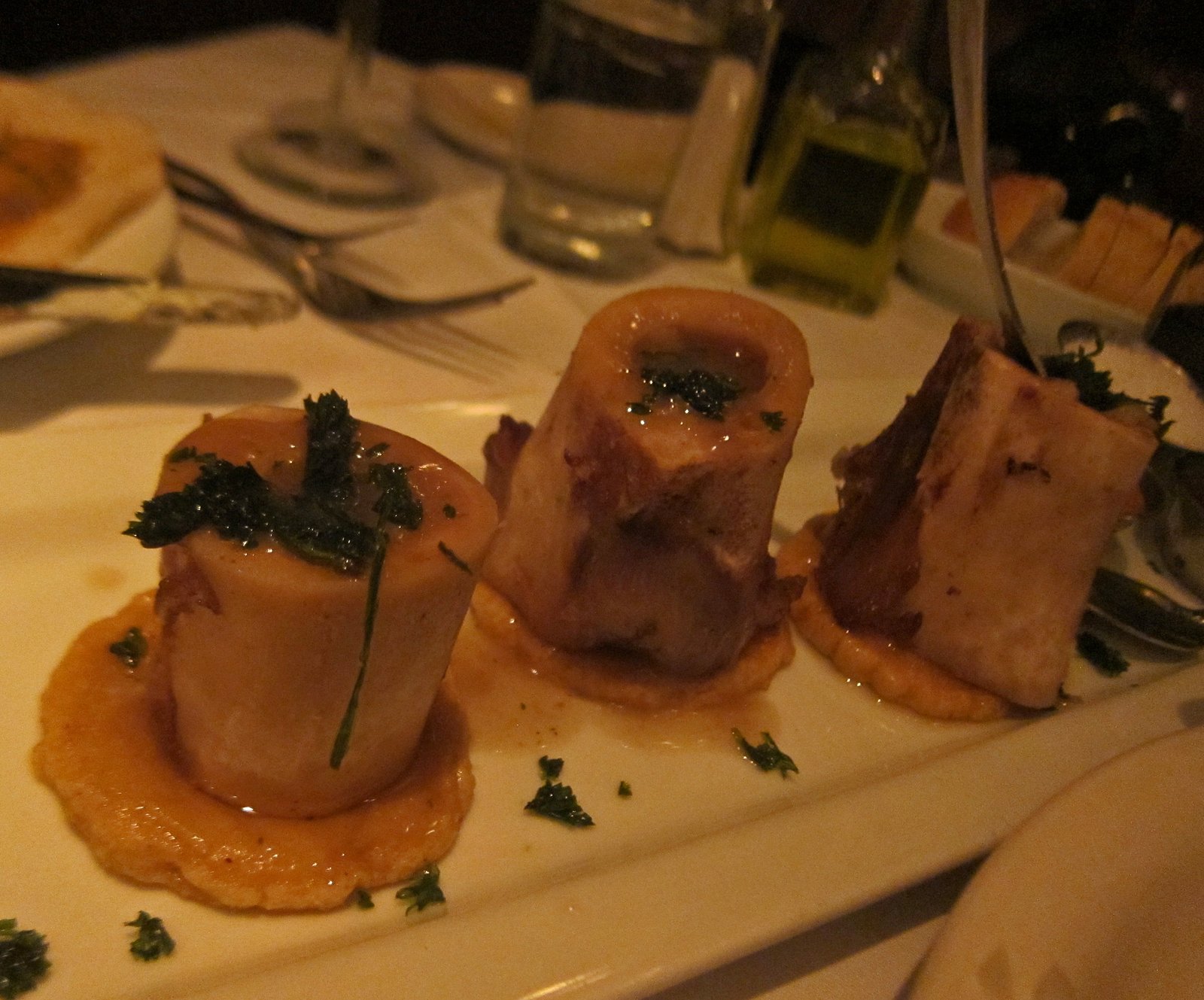 While the air dried ham (aka prosciutto, though they can't call it that) was "meh", really bland and lacking in the deep cured flavor we love, there were some real winner here. The chicken liver, basically a a light, spreadable pate really caught me off guard, sweet molasses at first, giving away to savory, with that chicken liver finish. I'm not a big fan of metallic chicken liver flavors, though I love my pate's. This gave me a wonderful ride. The duck rillette had a tremendous almost condensed duck flavor. The head cheese was nice and balanced and the pork terrine was also very tasty. Loved the variety of flavors present here.