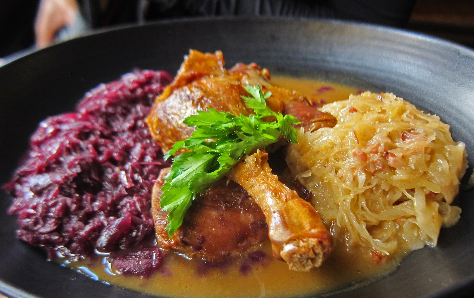 The Missus ordered the duck confit and asked if She could replace the potato dumplings with cabbage. They were nice enough to comply and so the Missus was in braised cabbage heaven with both red cabbage and braised sauerkraut.