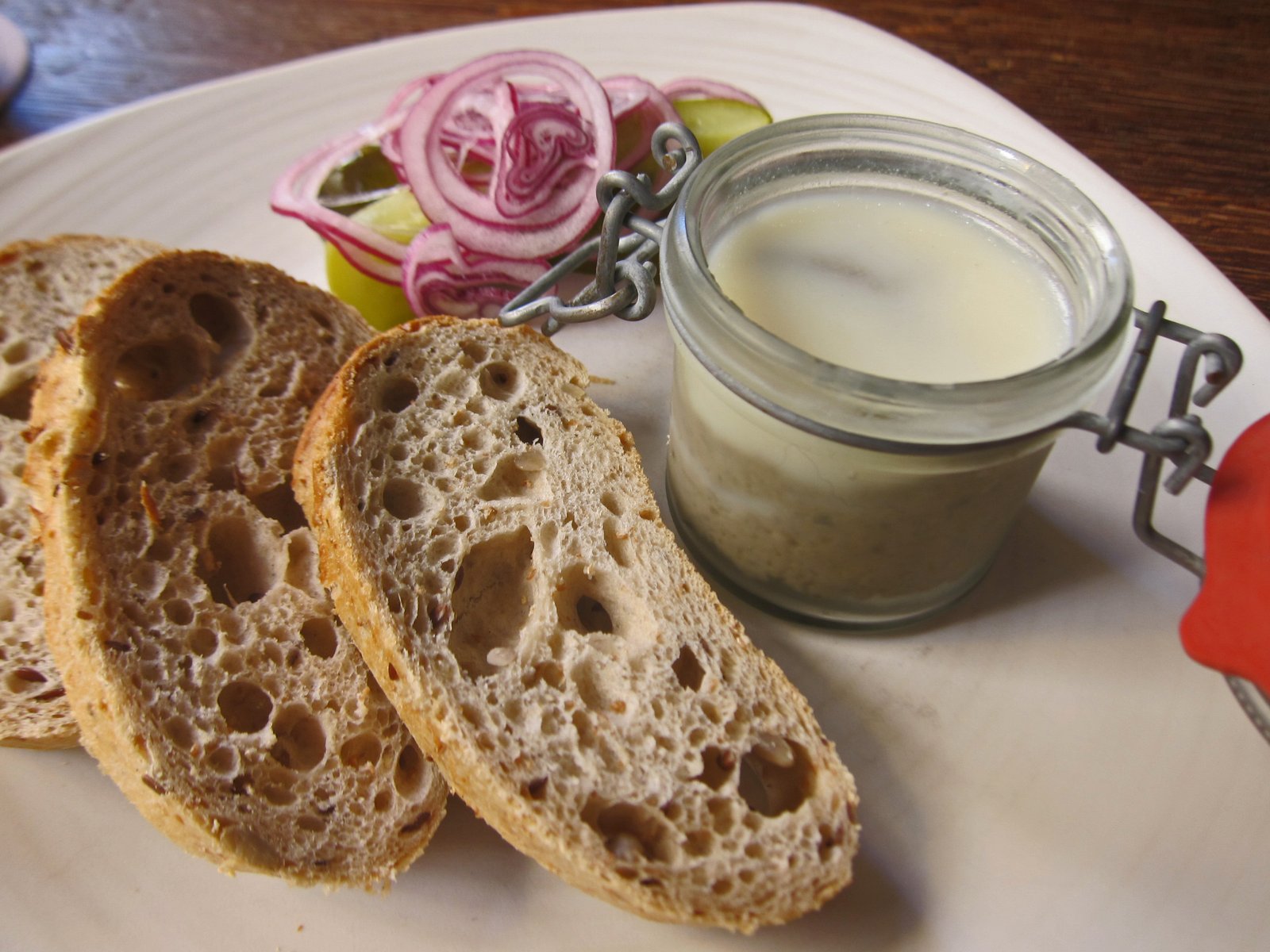 We ordered the duck rillette, but were given the duck pate. We notified the folks of the mistake and they were going to swap it out, but we decided to just go ahead and have the pate….which was nice and creamy.