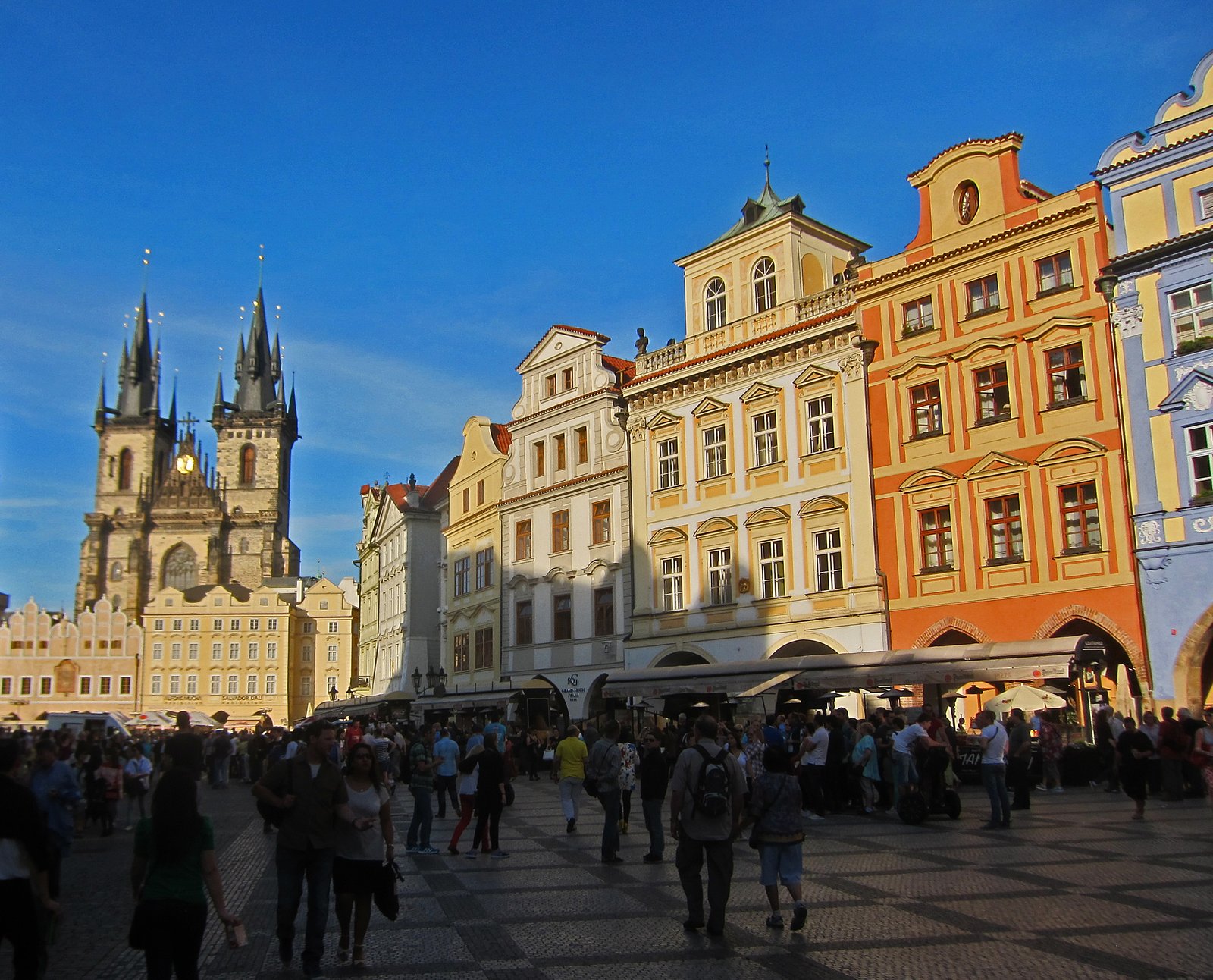Tourists we strolling up and down the square as the shadows grew longer marking the coming of dusk.