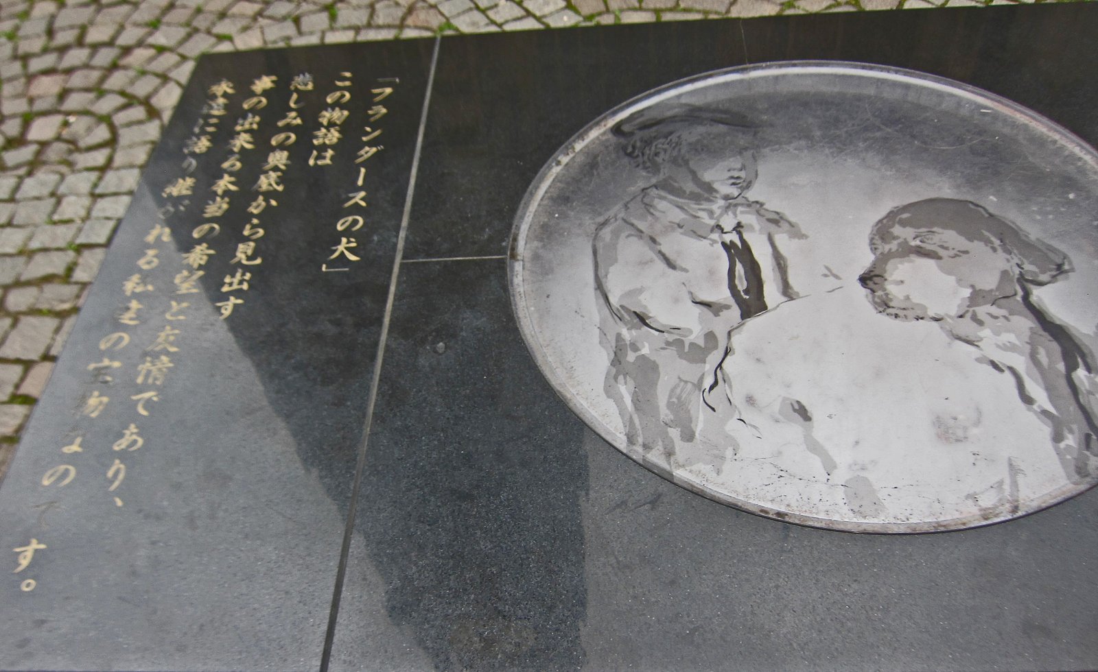 I was intrigued….what was this all about? Upon returning I did a little bit of research. This plaque, donated by Toyota is to commemorate at story, written by an English author, about a Flemish boy, that's become a classic in Japan. The story? A Dog of Flanders. If you're interested in the who/what/where/why, I really like this post, it covers the story about the story….about the story.