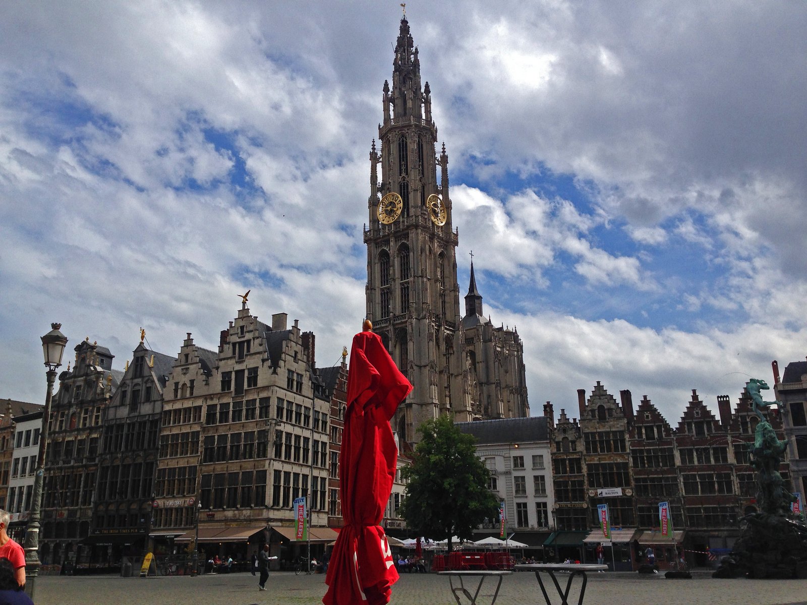 The one great thing about having a drink here was the view of the square and especially the 400 foot tall Cathedral of Our Lady.