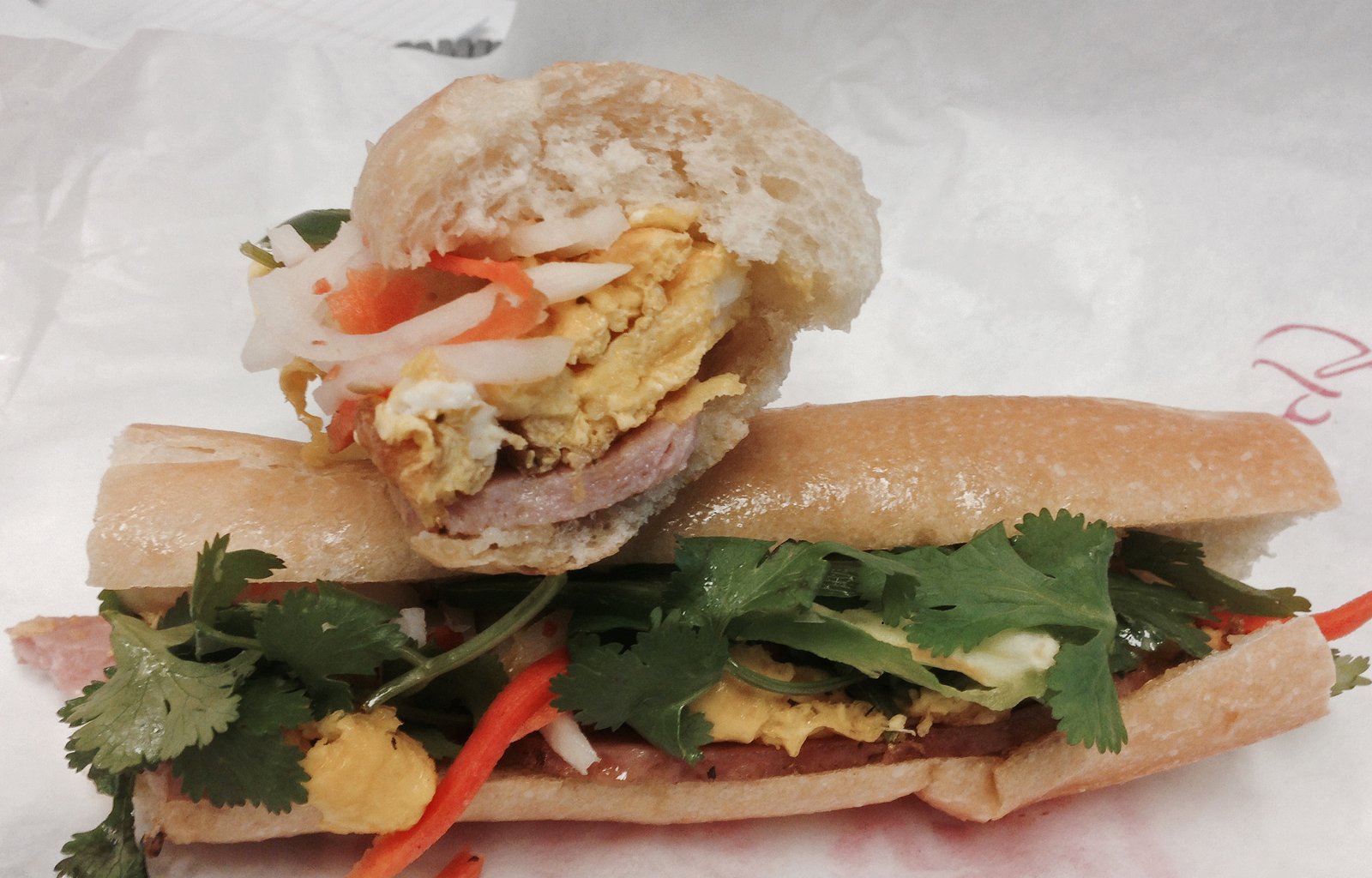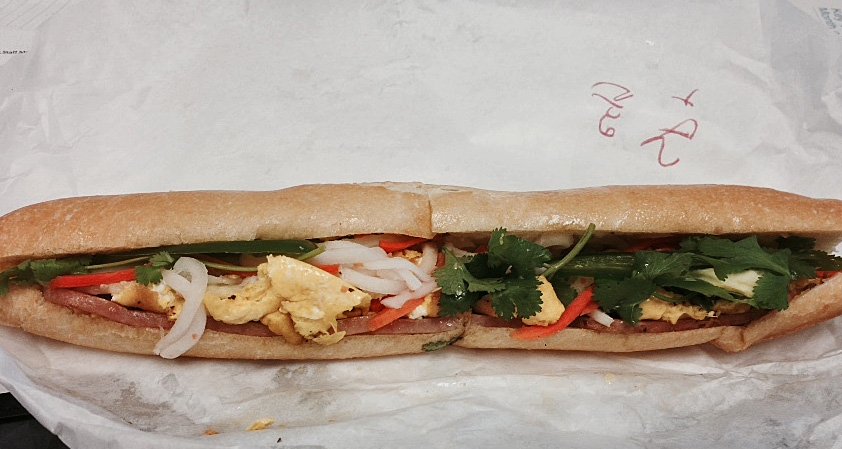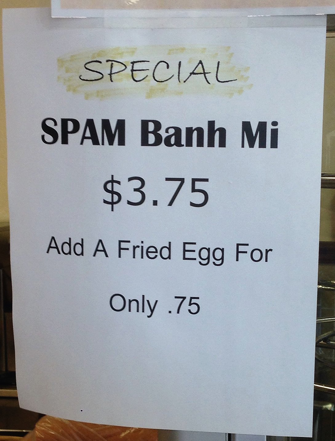 Spam Banh Mi??? Spam? Banh Mi? And an egg? Why didn't I see the sign before I ordered? I wasn't going to miss another chance at a Spam Banh Mi…….