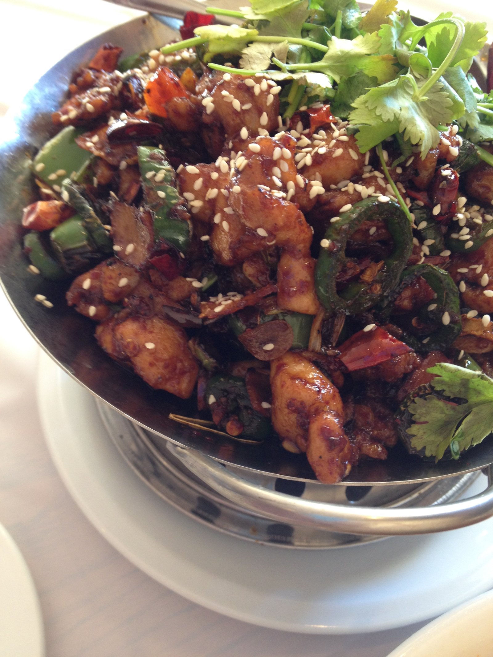 Chicken in dried pot ($8.99)- there is a sterno flame under this pot, which had the most flavorful melding of spices, almost chocolate-like.