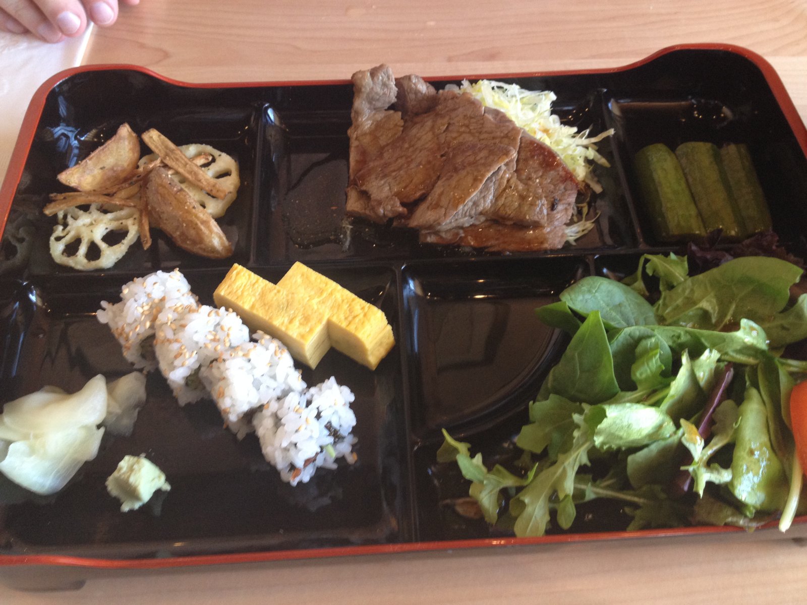 The Mister decided to try a Combination Bento ($15), with teriyaki beef and spicy tuna roll. Again, perfection (note the lack of sticky teriyaki sauce). The sides of pickles, radish, fried (karaage) lotus root and potato, salad and even tamago (egg) were so fresh tasting, complimenting the flavors.