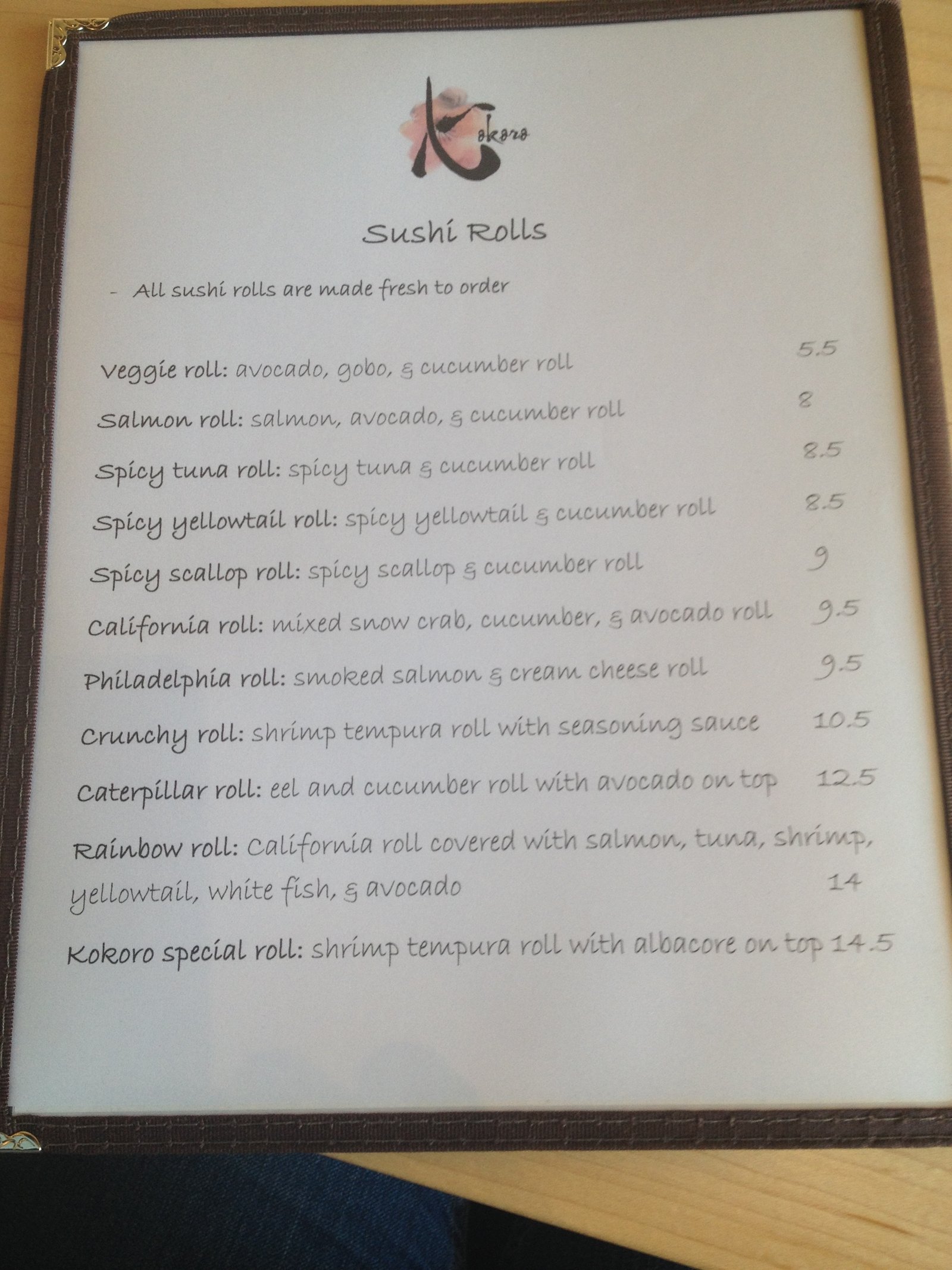 Kokoro is more than excellent in quality and choices for a really nice lunch.